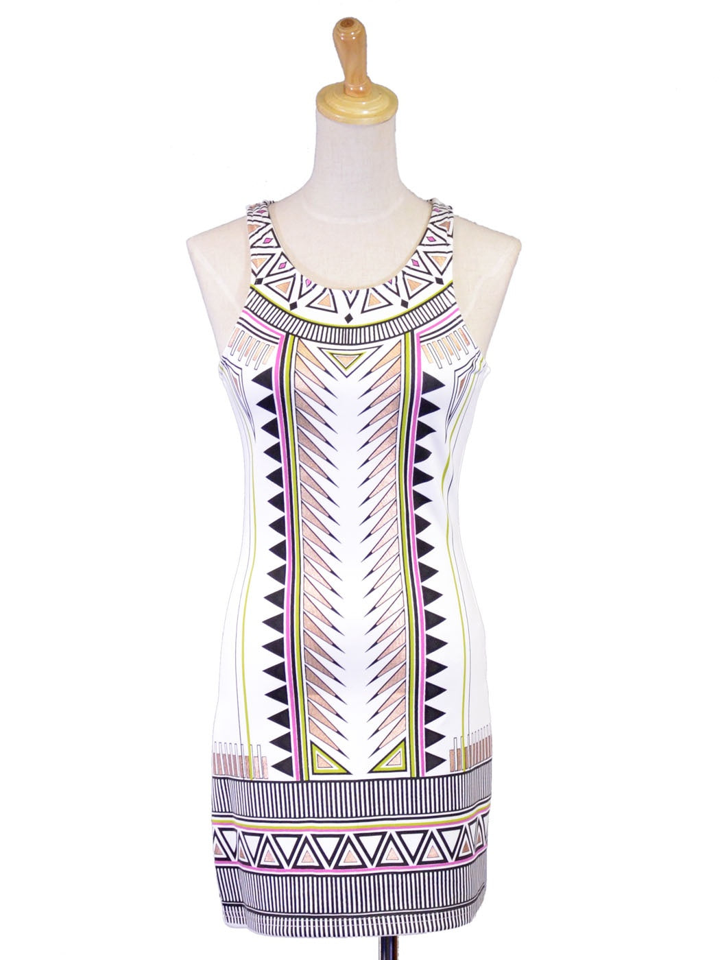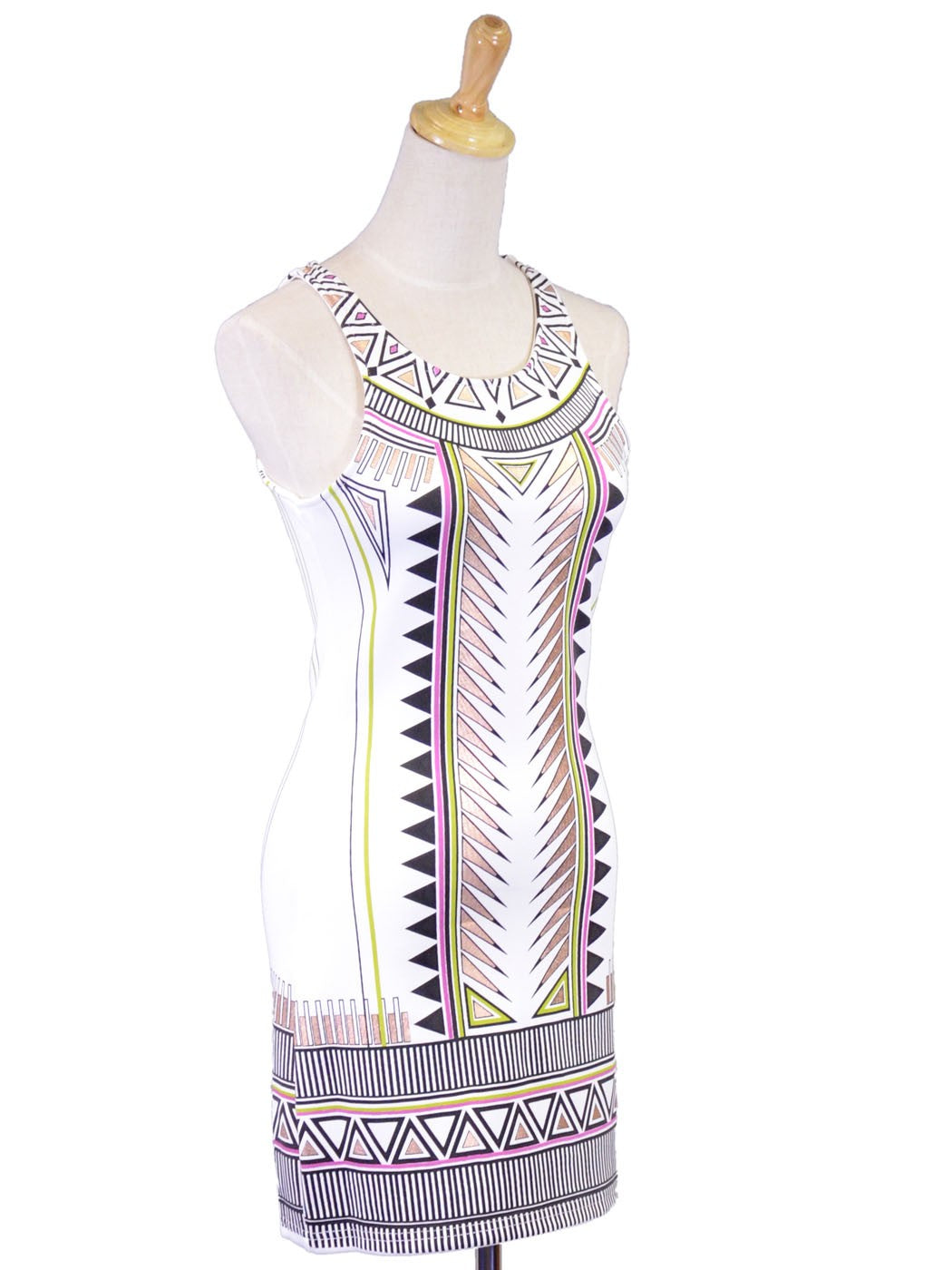 Oxford Circus Trendy Eccentric Bodycon Tribal Print Zipper Back Dress