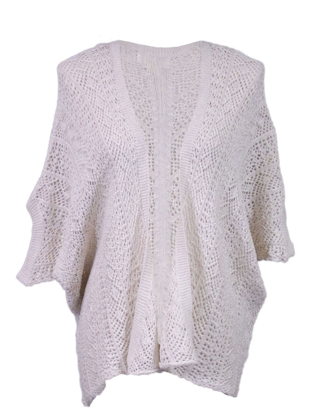 En Creme Casual Open Front Raglan Sleeves Light Knit Oversized Cardigan