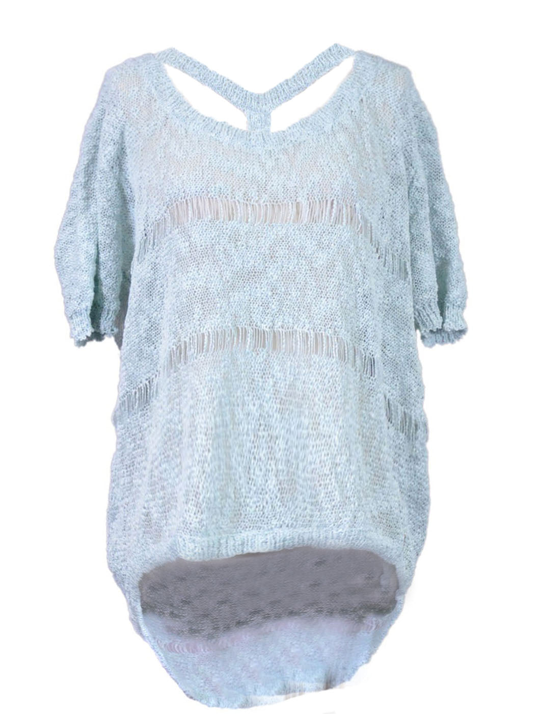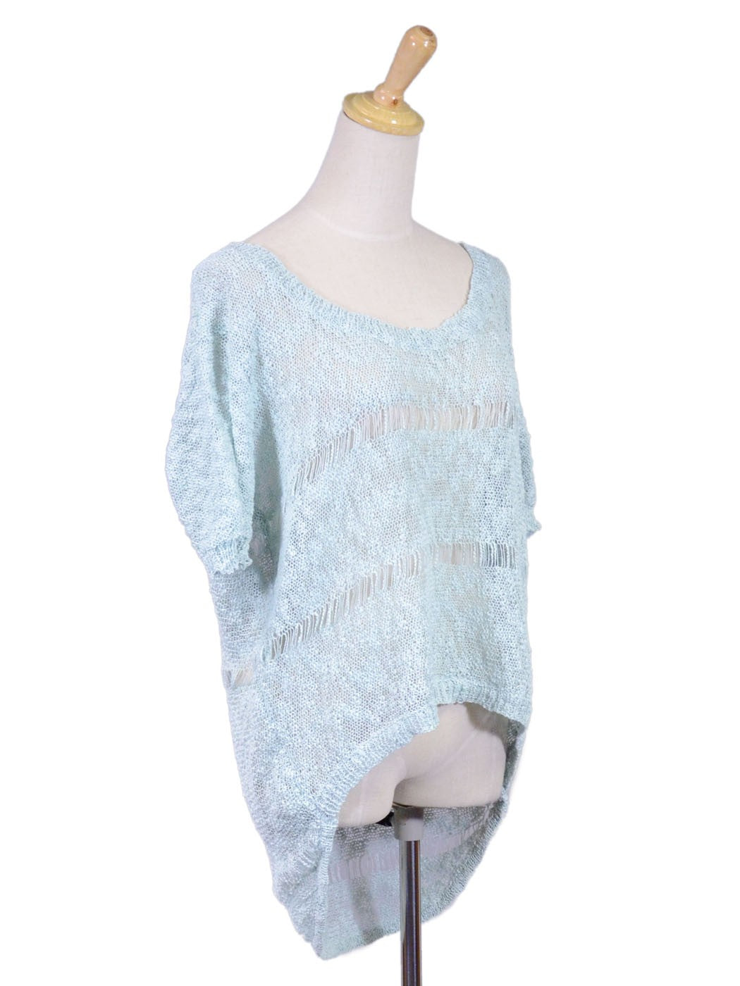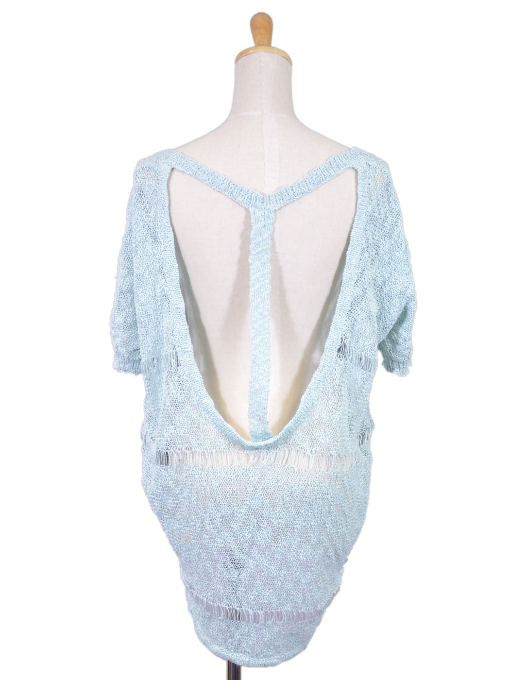 Uniq Spring Mint Open T-Back Slub Yarn Short Sleeves Hi-Lo Sweater Top