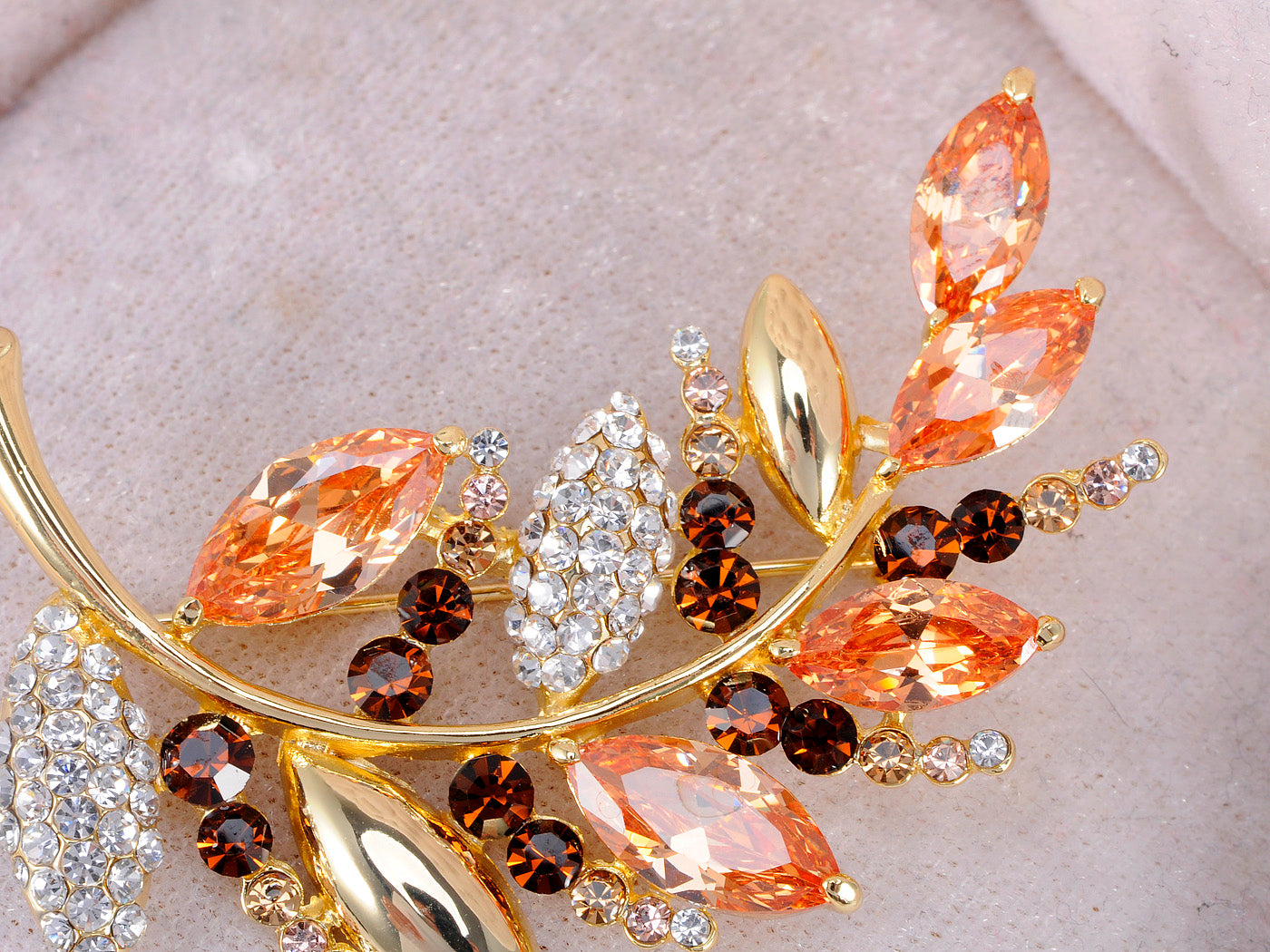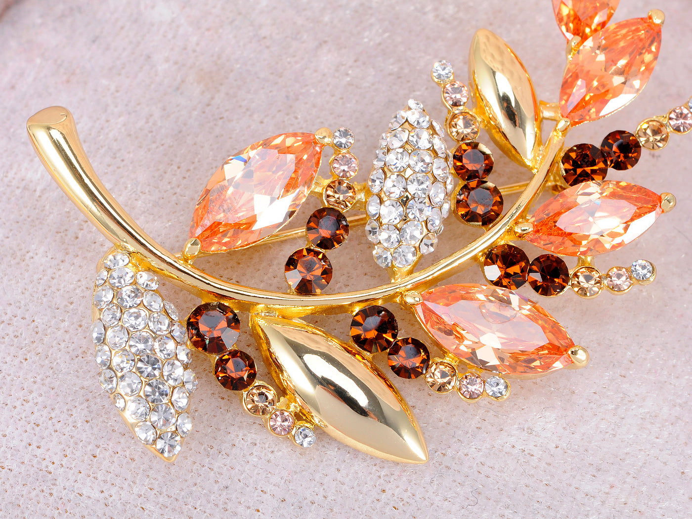 Swarovski Crystal Topaz Colored Curved Leaf Tree Branch Brooch Pin