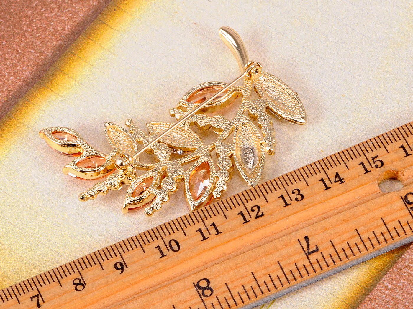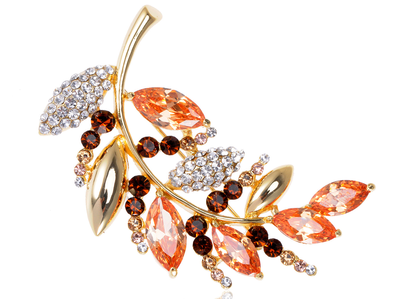 - UNIQUE DESIGN - Brooch featuring leaves on a tree branch design with light colorado/light and smoked topaz/clear crystal colored rhinestones.