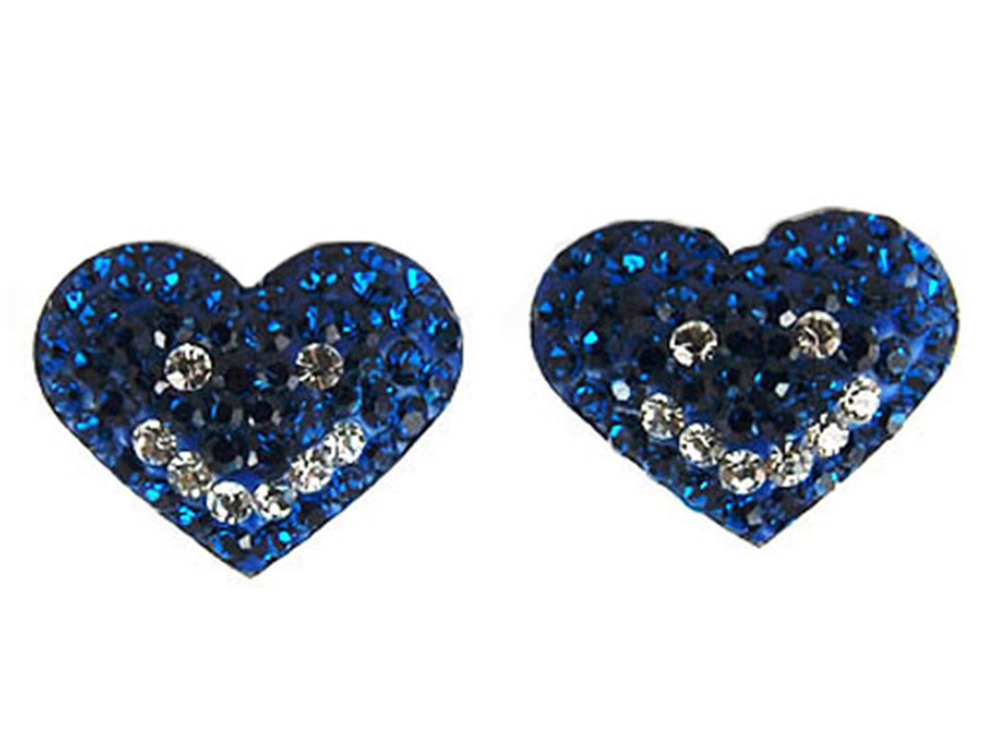 Element Silver Blue Smiley Face Emoji Heart Stud Earrings