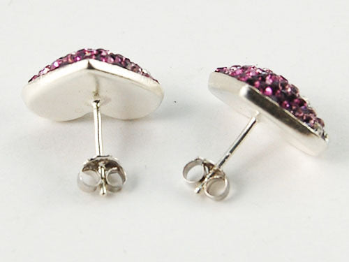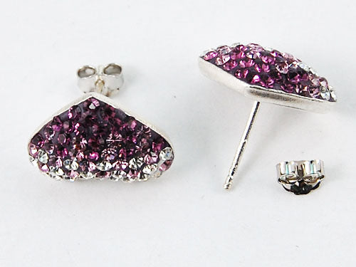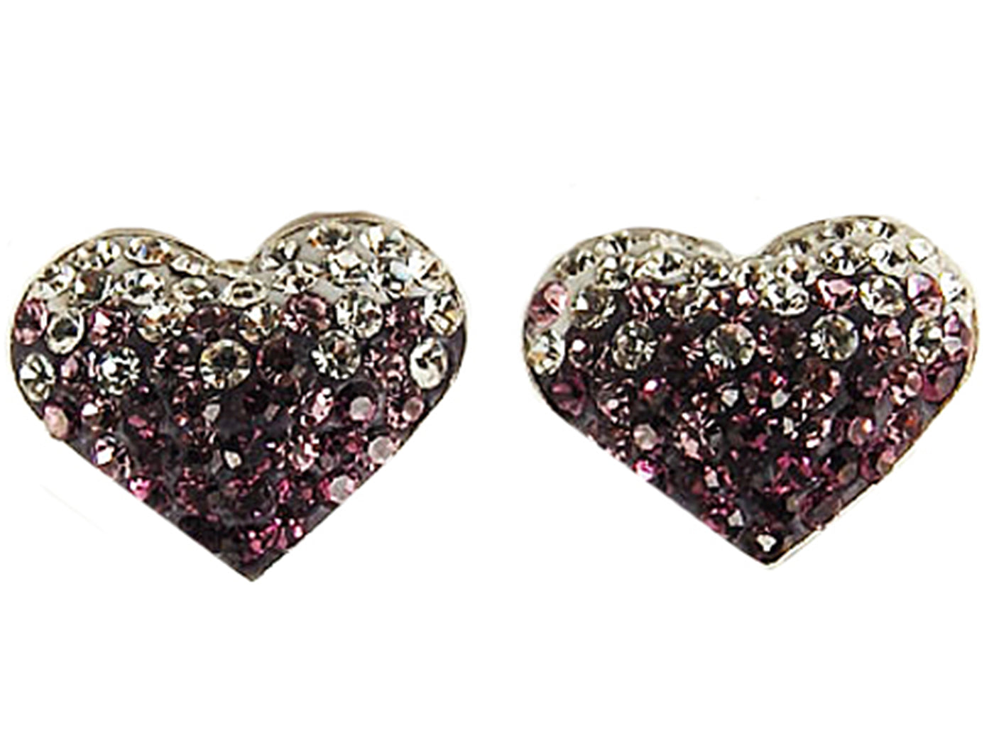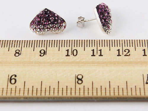 - Beautiful and unique. These stud heart earrings are made from a gradient of genuine purple crystal rhinestones. High quality metal alloy will make this item durable as well as beautiful. Makes for the perfect gift.
