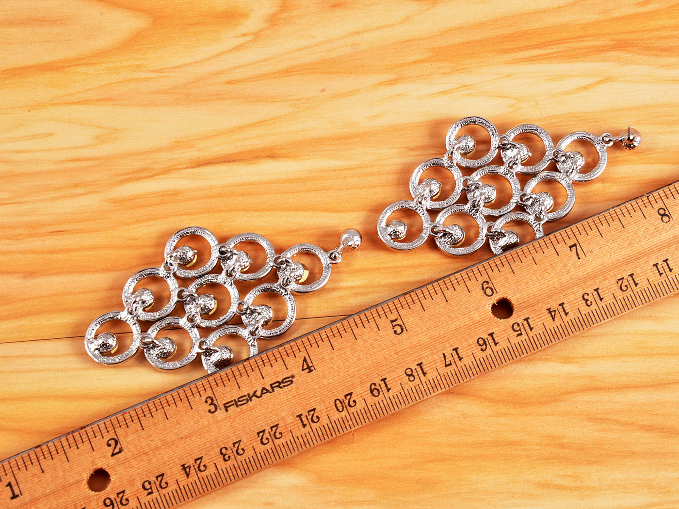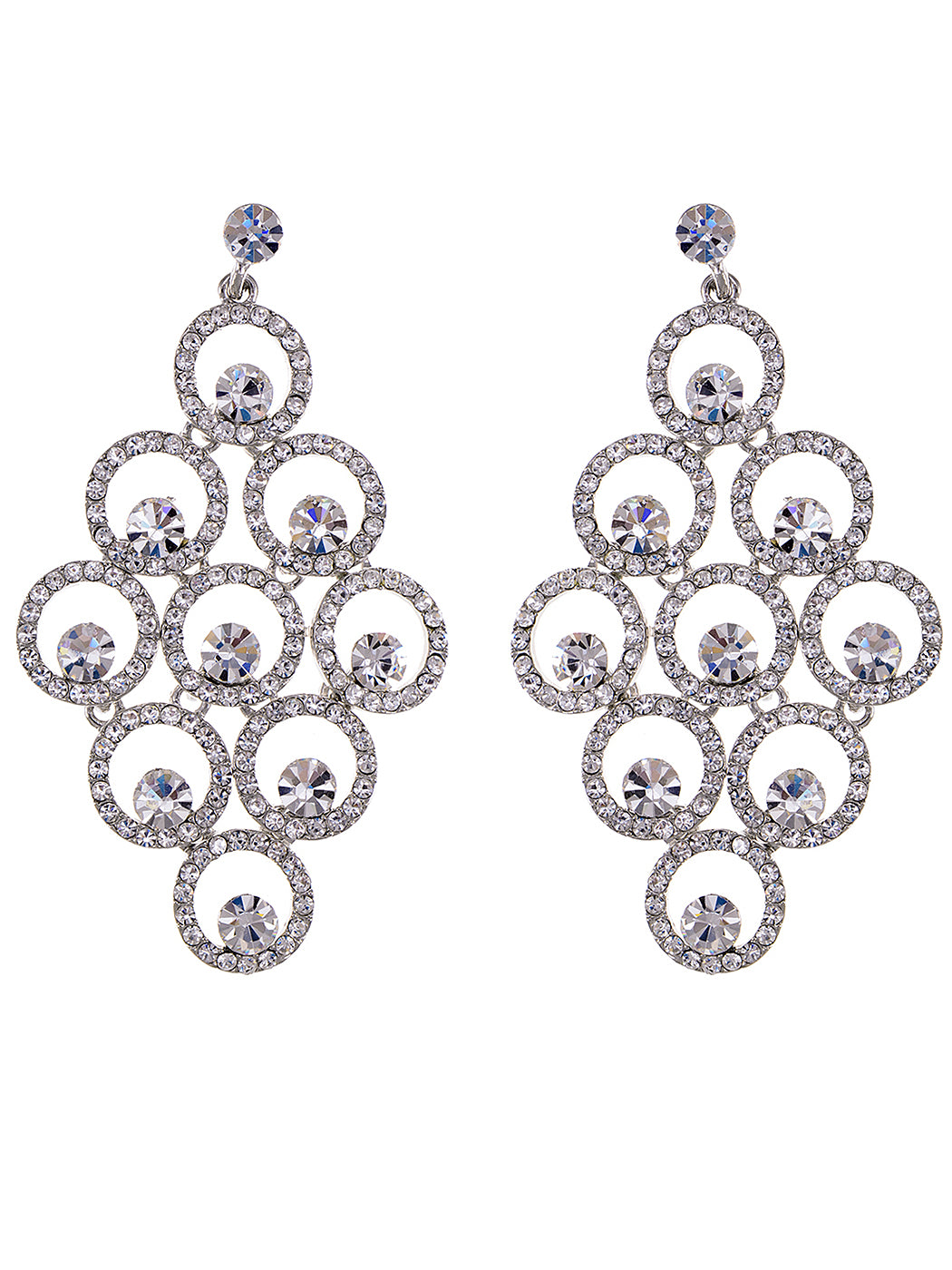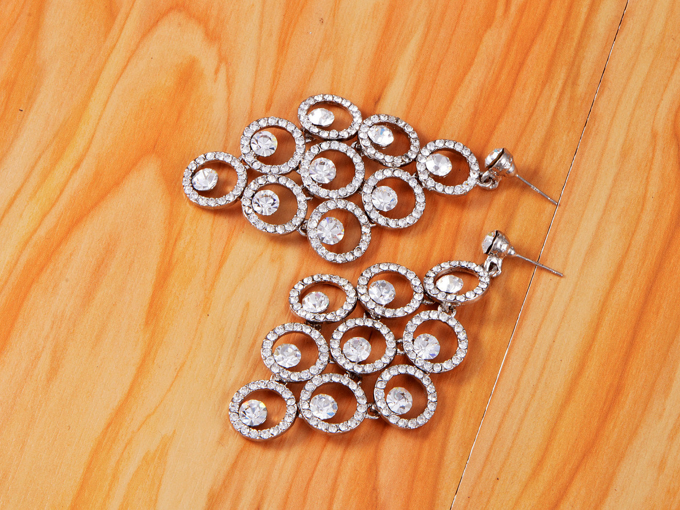 - UNIQUE DESIGN - Dangle earrings featuring circle designs with clear crystal colored rhinestones.