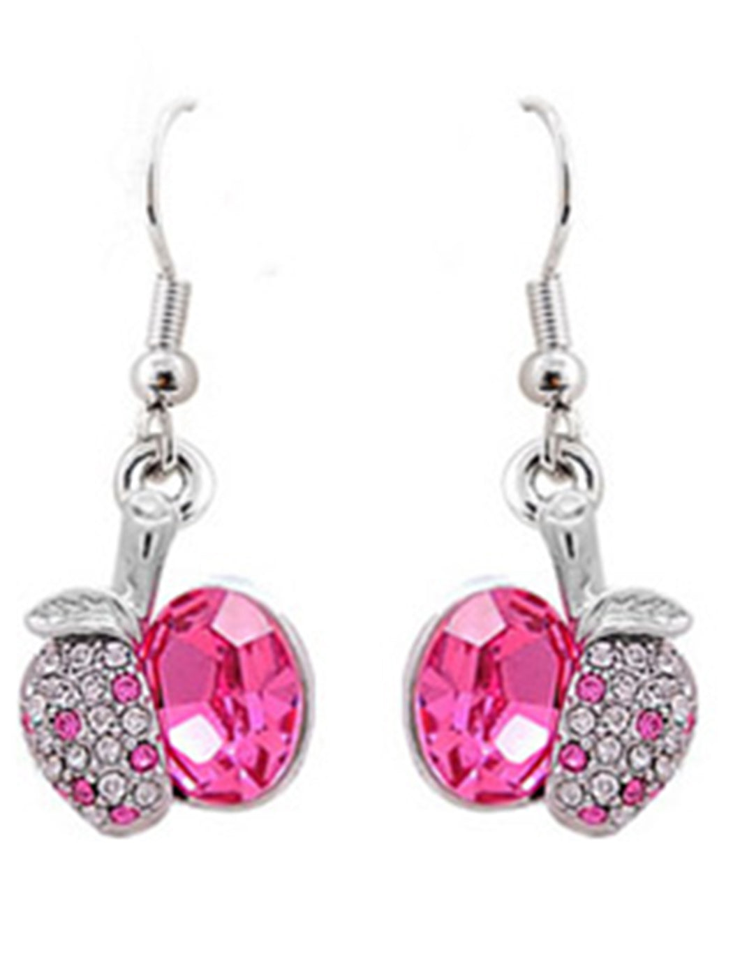 Element Silver Rose Pink Colored Apple Fruit Dangle Earrings