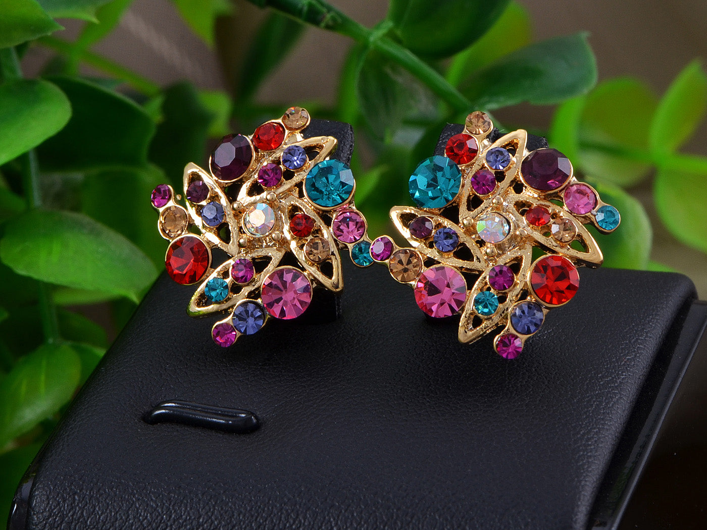 - UNIQUE DESIGN - Stud earring featuring cutout square shape design with different sizes of muticolored rhinestones.