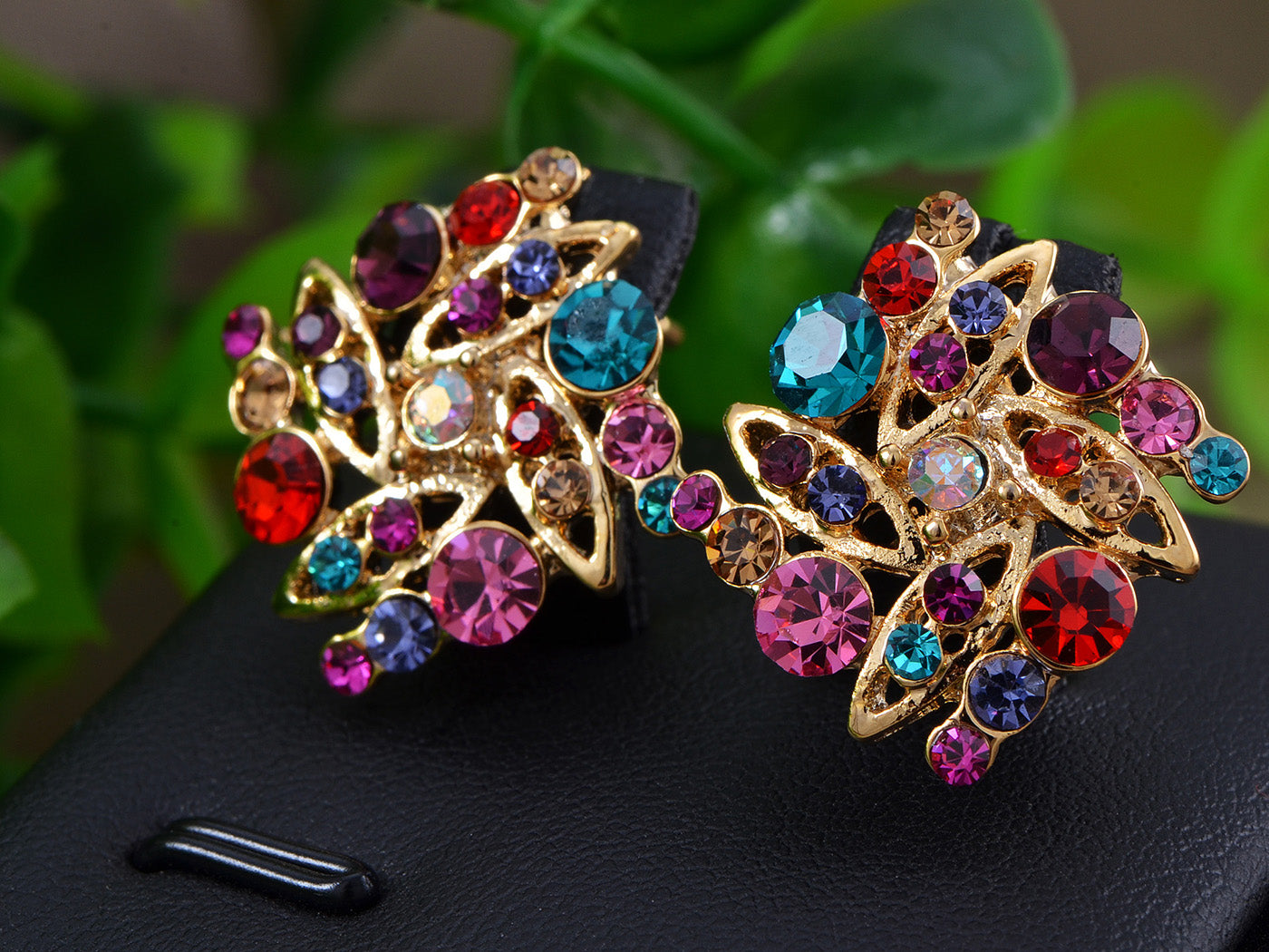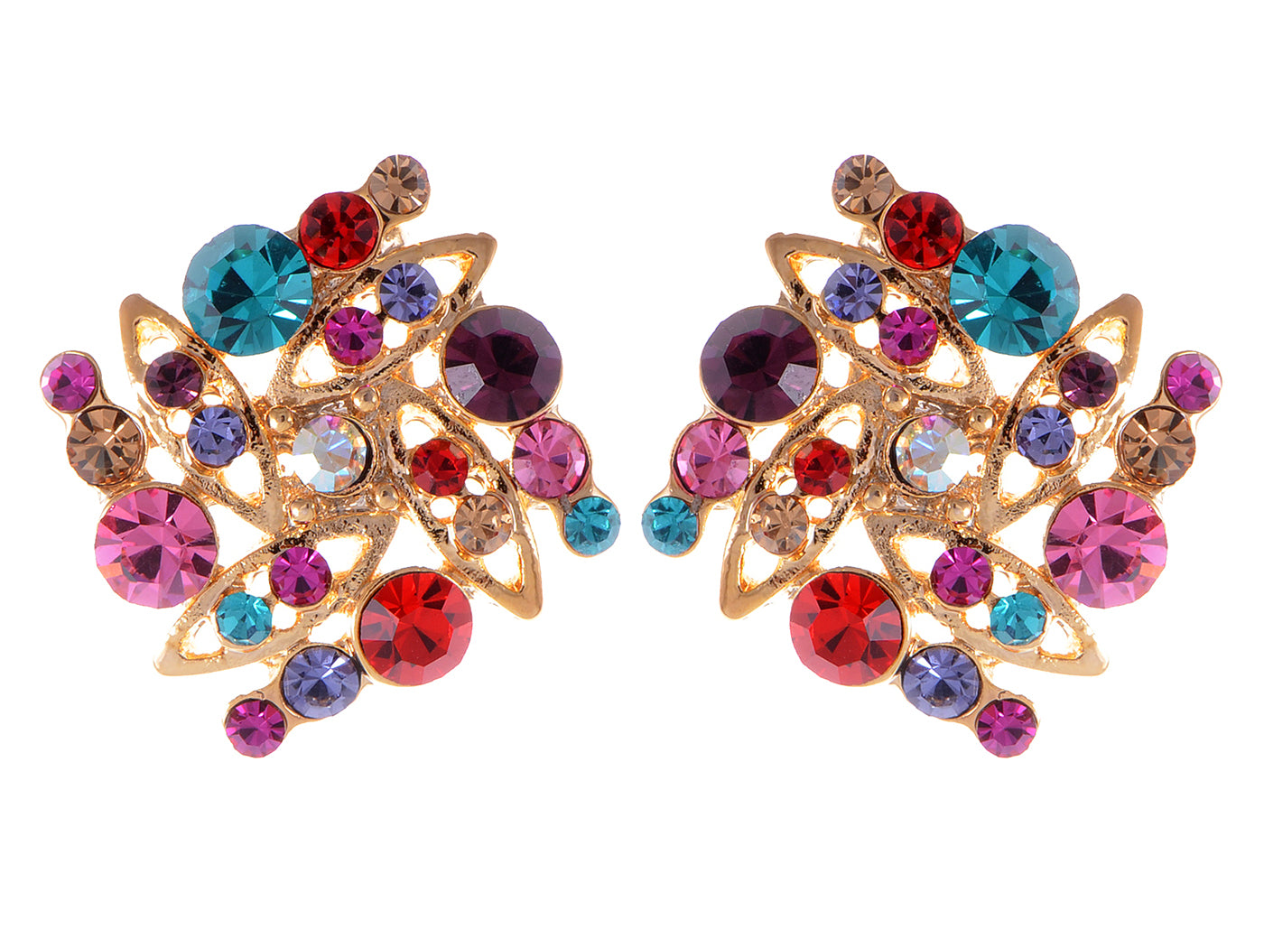 Swarovski Crystal Multicolored Colorful Square Shape Stud Earrings