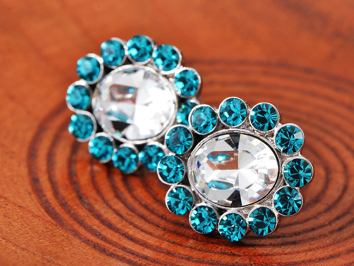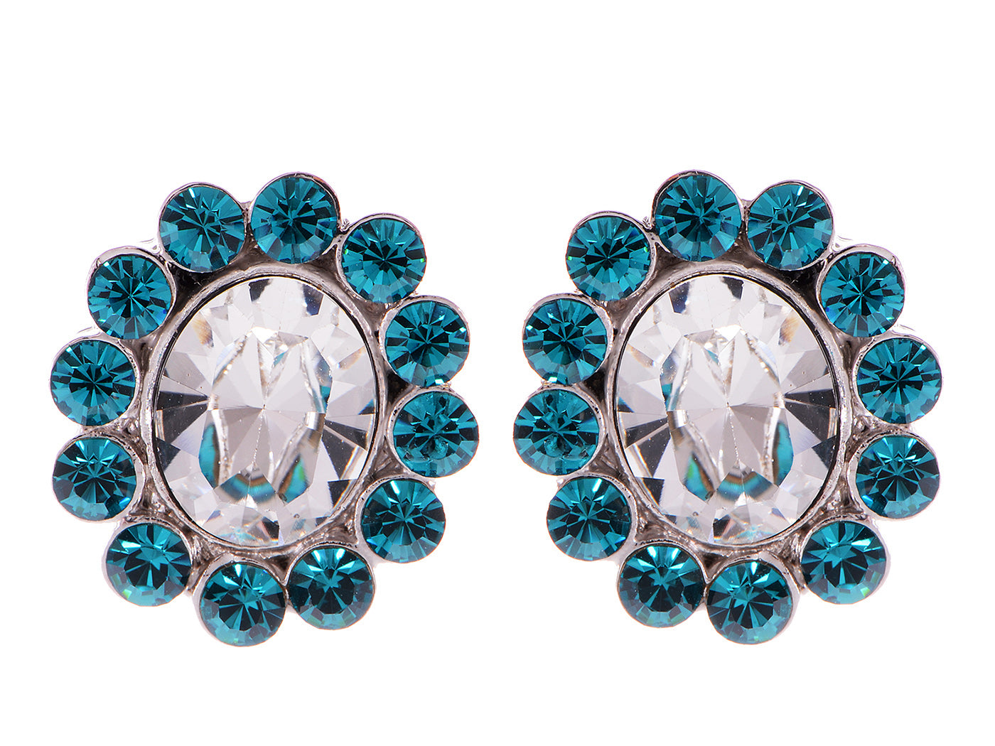 Swarovski Crystal Element Silver Zircon Blue Colored Floral Flower Petal Stud Earrings