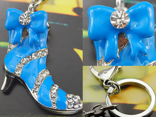 Turquoise Blue Color Enamel Girly Boot Stiletto Heel Keychain