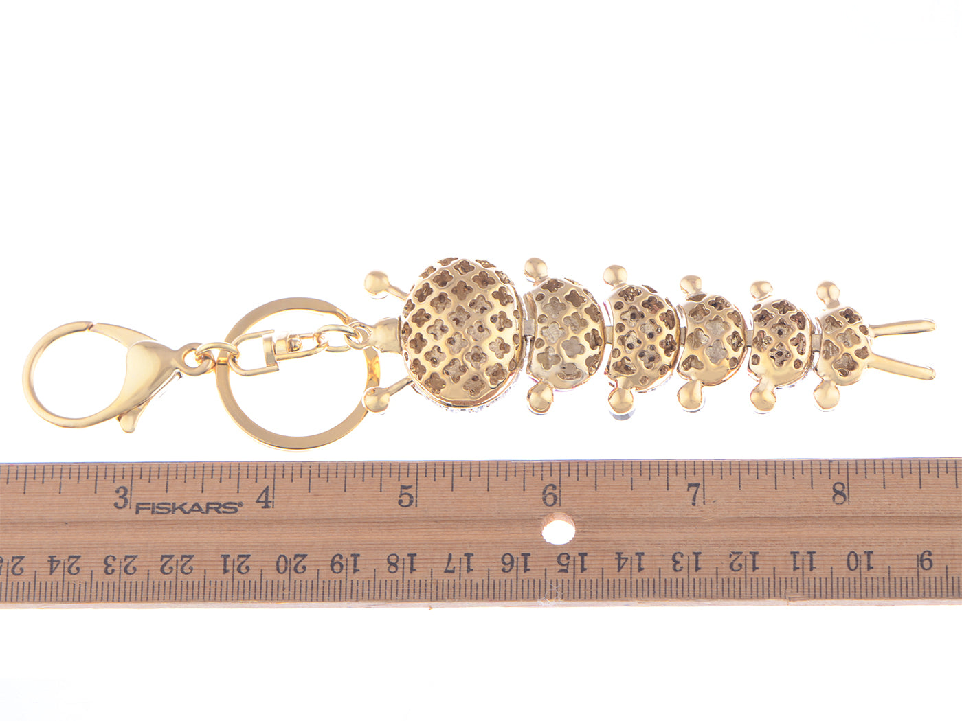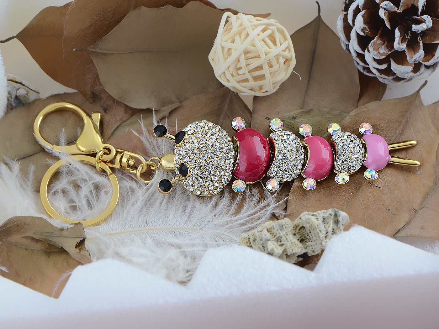 • ADORABLE DESIGN - This is a whimsical ruby red centipede caterpillar key chain. Contains shiny clear crystal rhinestones throughout. The eyes and antennae are made of shiny black crystal rhinestones.