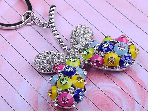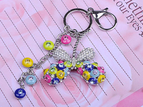 - Whimsical and colorful, this fun fluttering butterfly will brighten your day. Exquisite designer jewelry loop key chain. Item is accented by fine genuine flawless Swarovski crystal rhinestones. Hand crafted and made to ensure the highest quality. This keychain is durable and quite cute. Makes the perfect gift or present to that special someone.