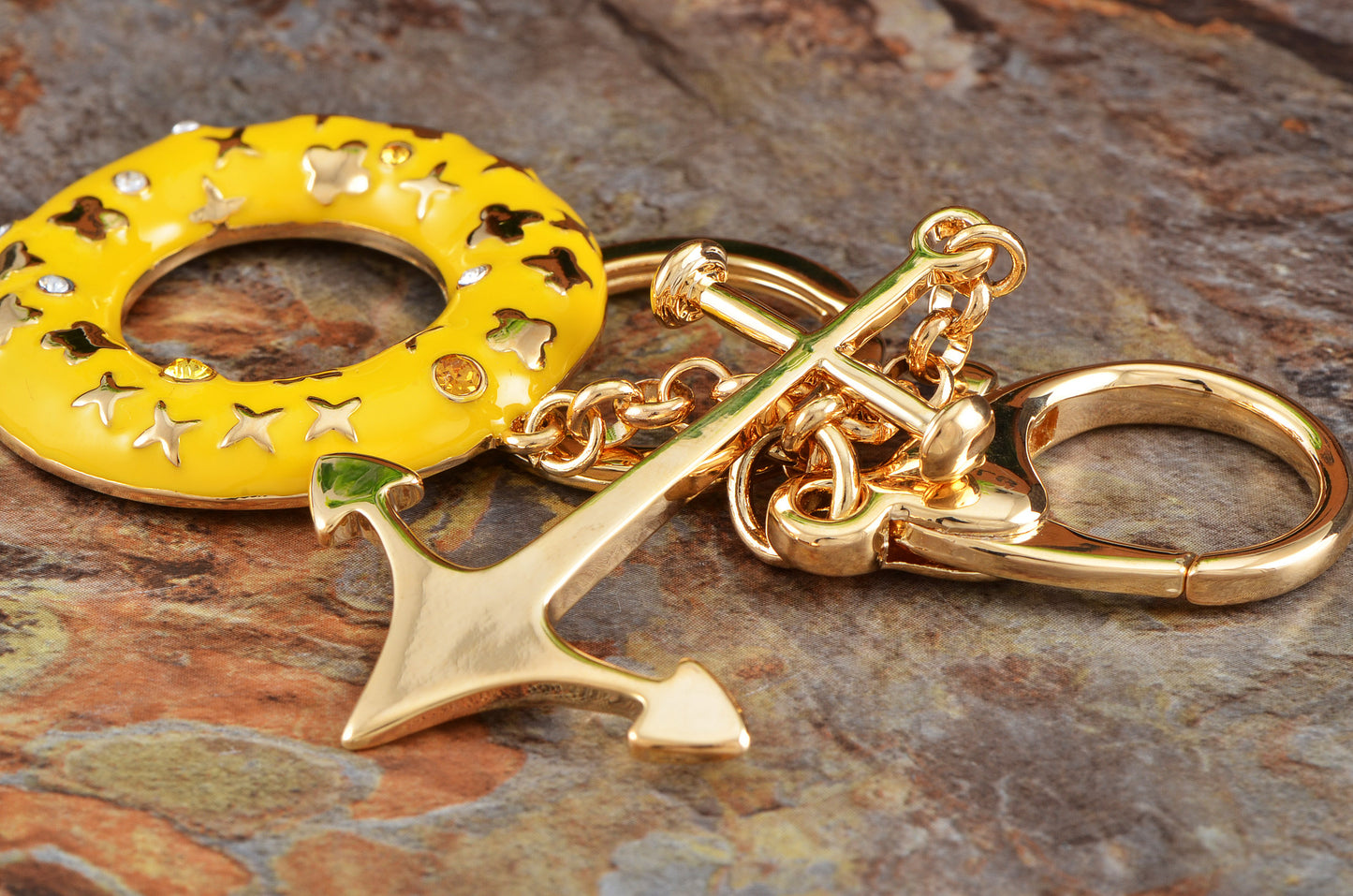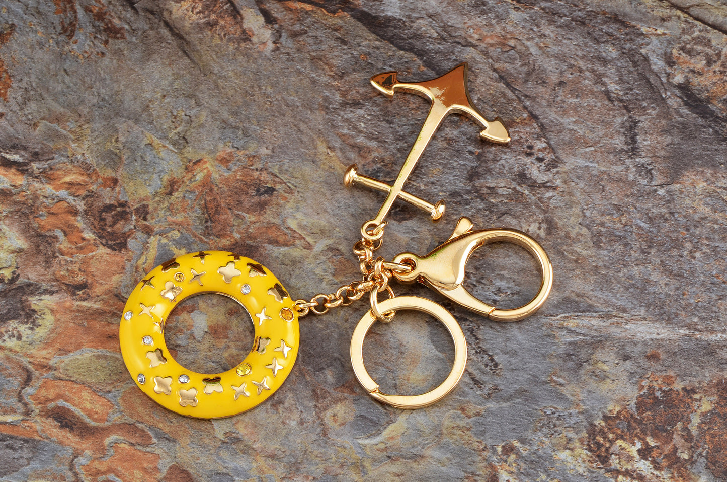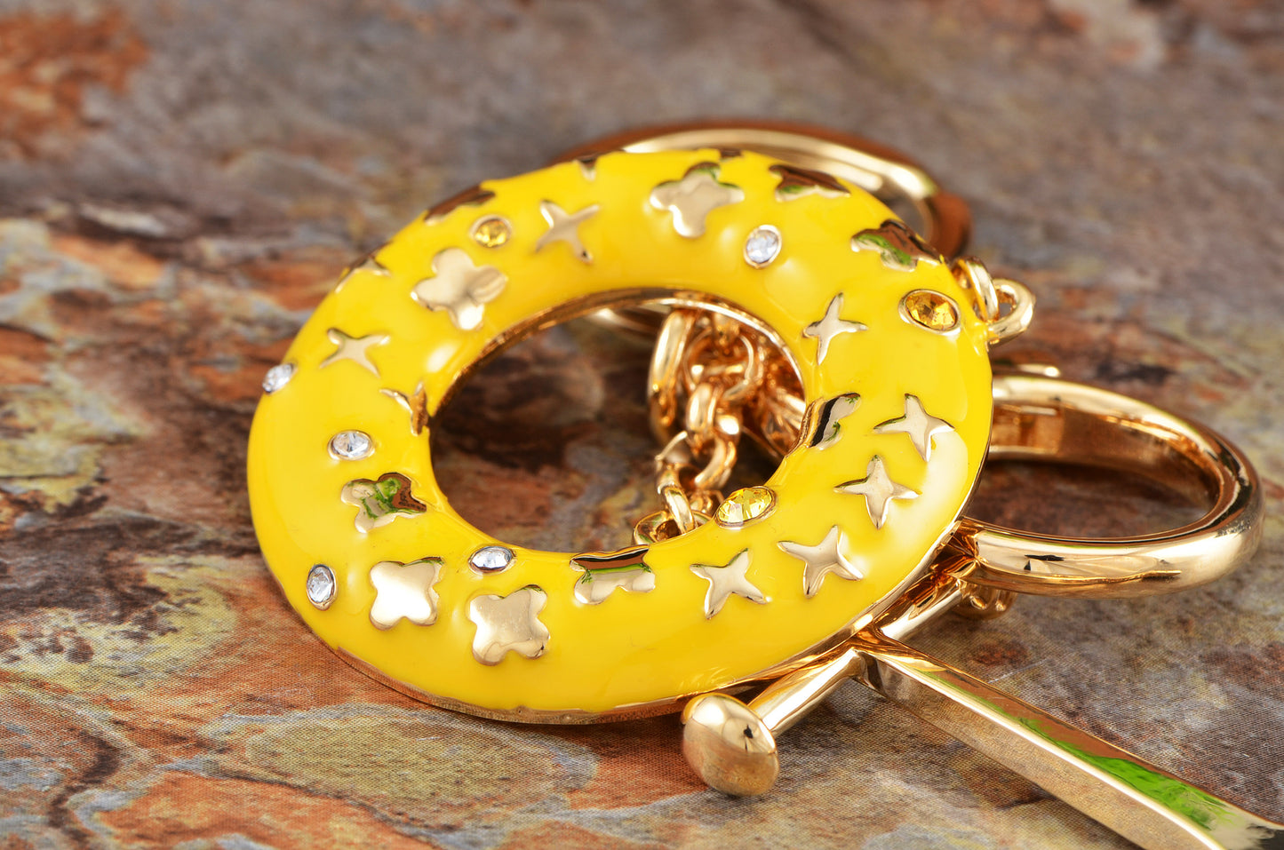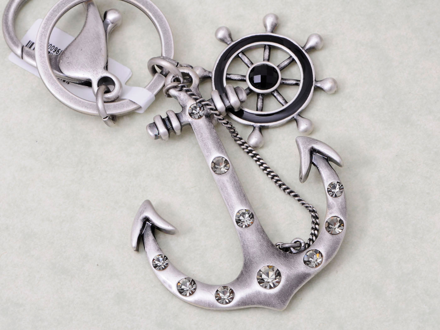 - UNIQUE DESIGN - Keychain with grey colored rhinestones, key ring, lobster claw clip, and two charms.