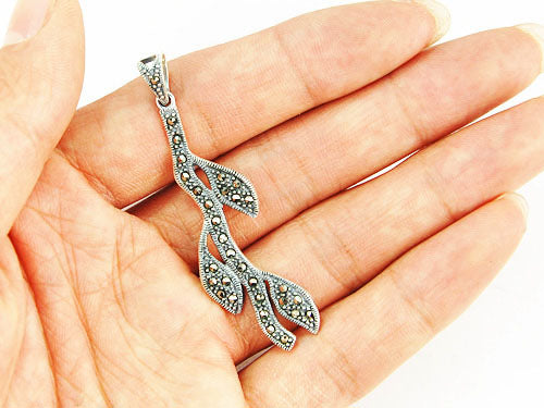 Thai Sterling Silver 92.5 Tree Branch Leaf Leaves Fall Beaded Necklace Pendant