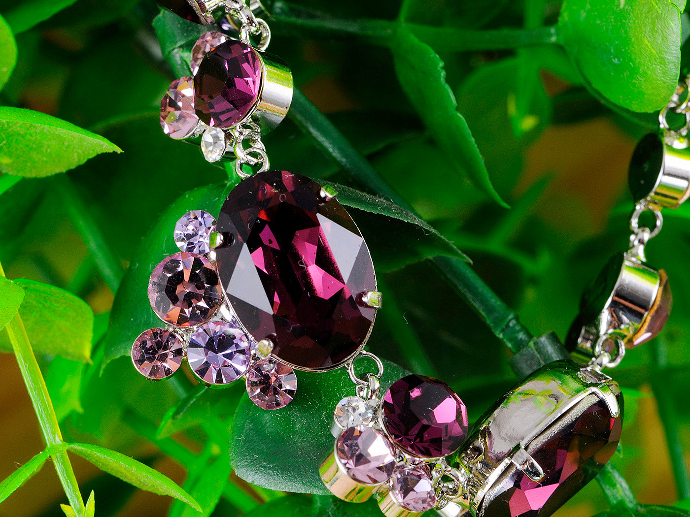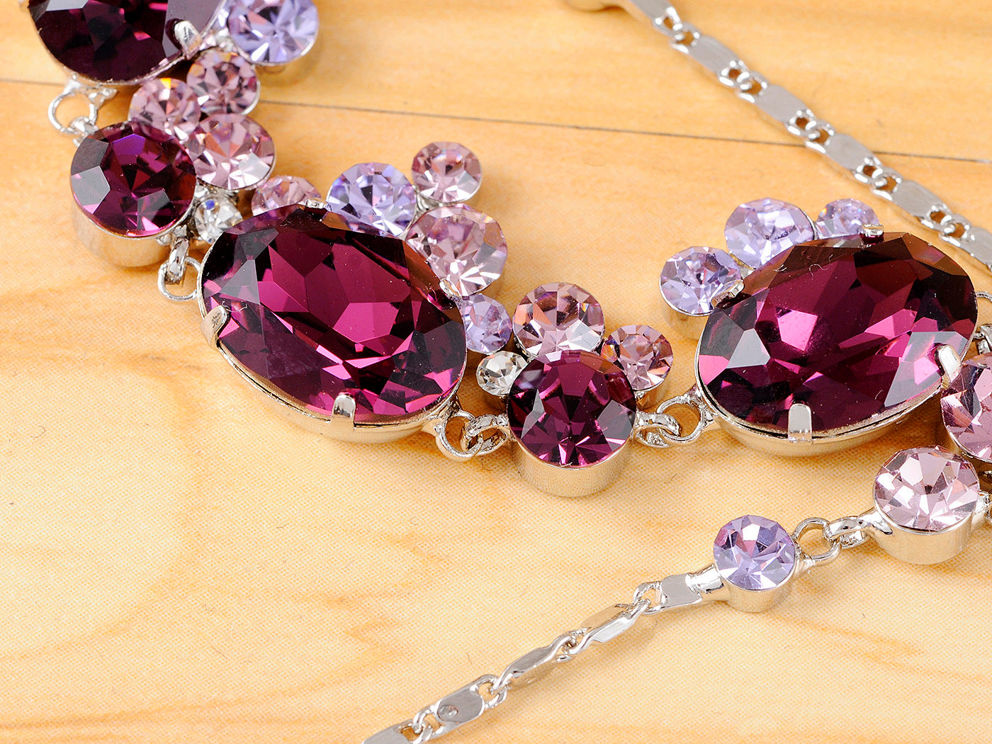 - STUNNING DESIGN - Beautiful silvery tone tear drop earring necklace set. Sparkly amethyst beads and pink purple crystal rhinestones are embedded throughout both the necklace and earrings for a stunning feature.
