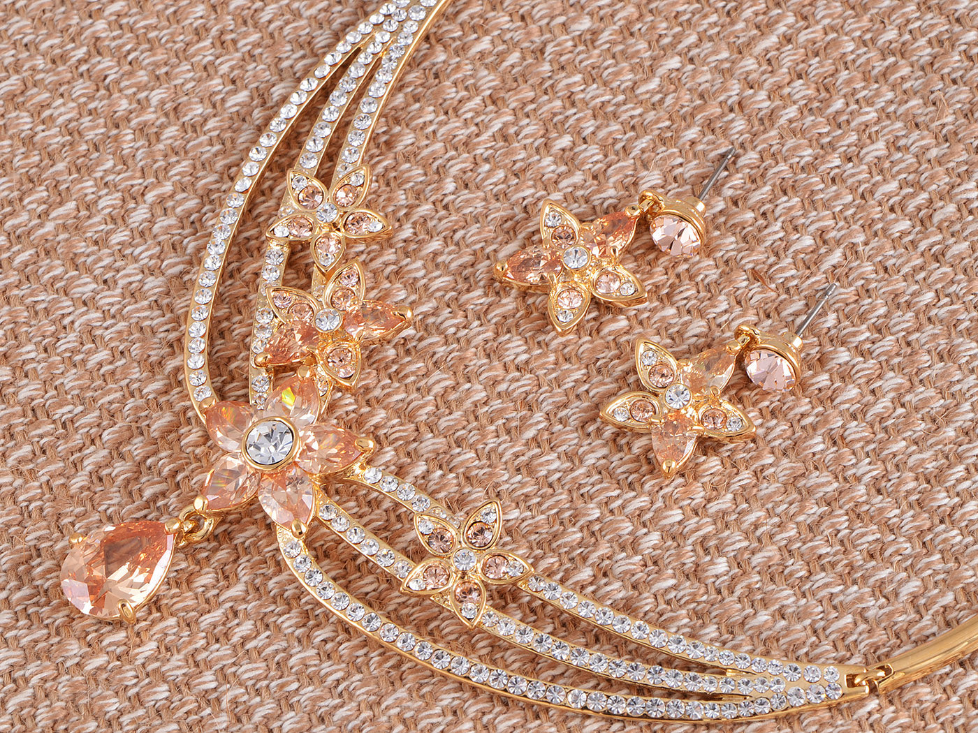 Swarovski Crystal Topaz Star Flower Necklace Earring Set