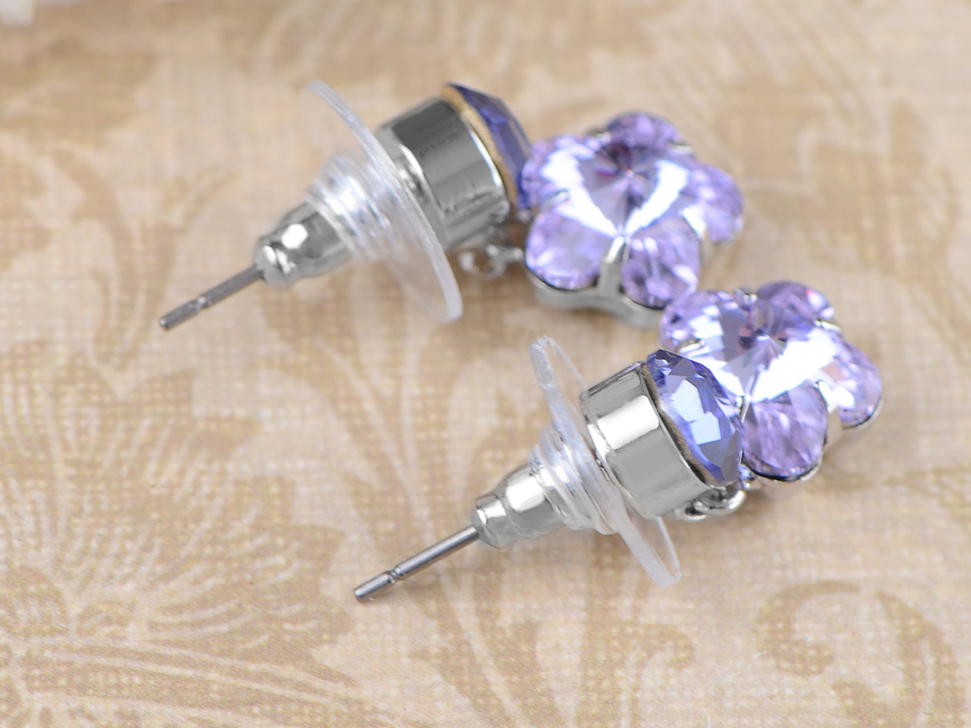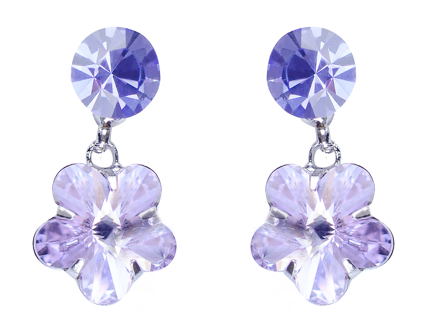 - BEAUTIFUL PURPLE CRYSTALS. This glamorous necklace and earring set features gorgeous purple rhinestones. The flowers feature lighter, violet crystals, while both circle sizes feature a tanzanite colored crystal rhinestone. These chic colors pair perfectly with the silver toned metal of the chain and stone settings.