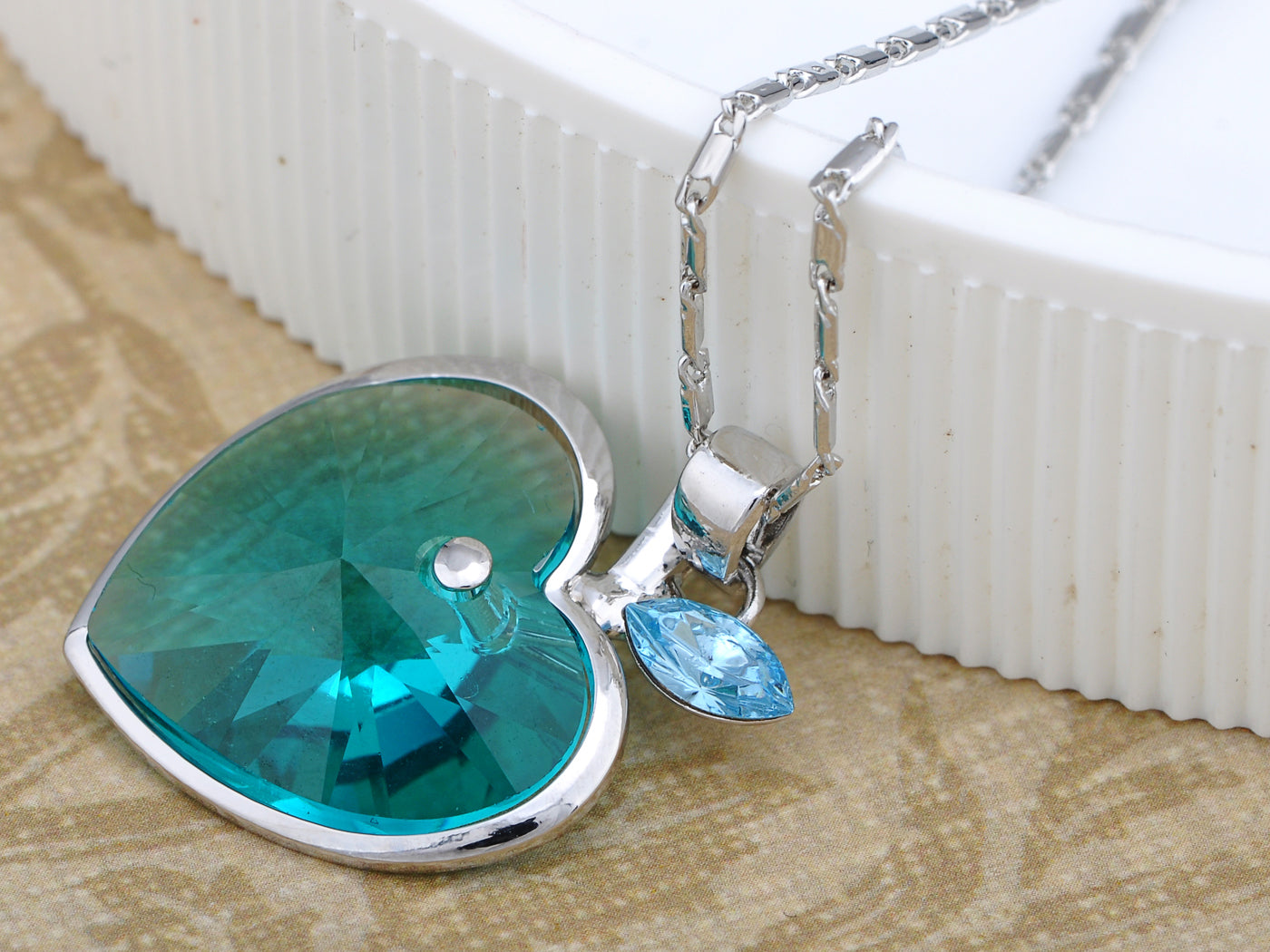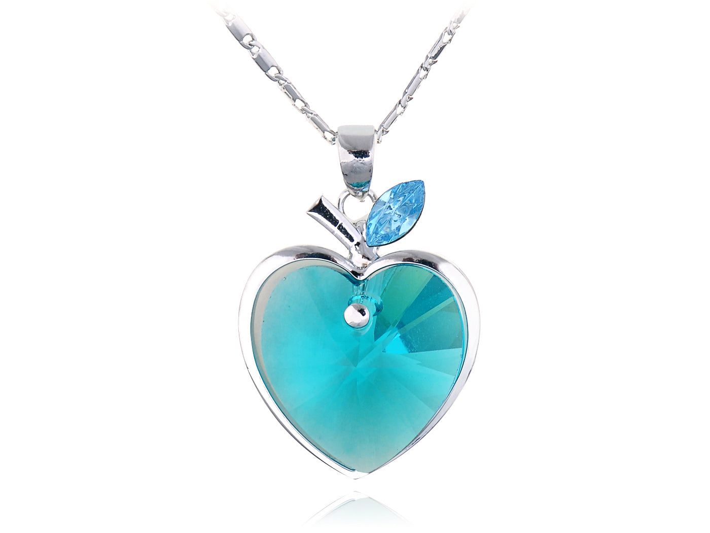 - ZIRCON DESIGN - This stunning aqua zircon apple & heart necklace. The necklace is designed with an aqua charming sapphire& crystals!