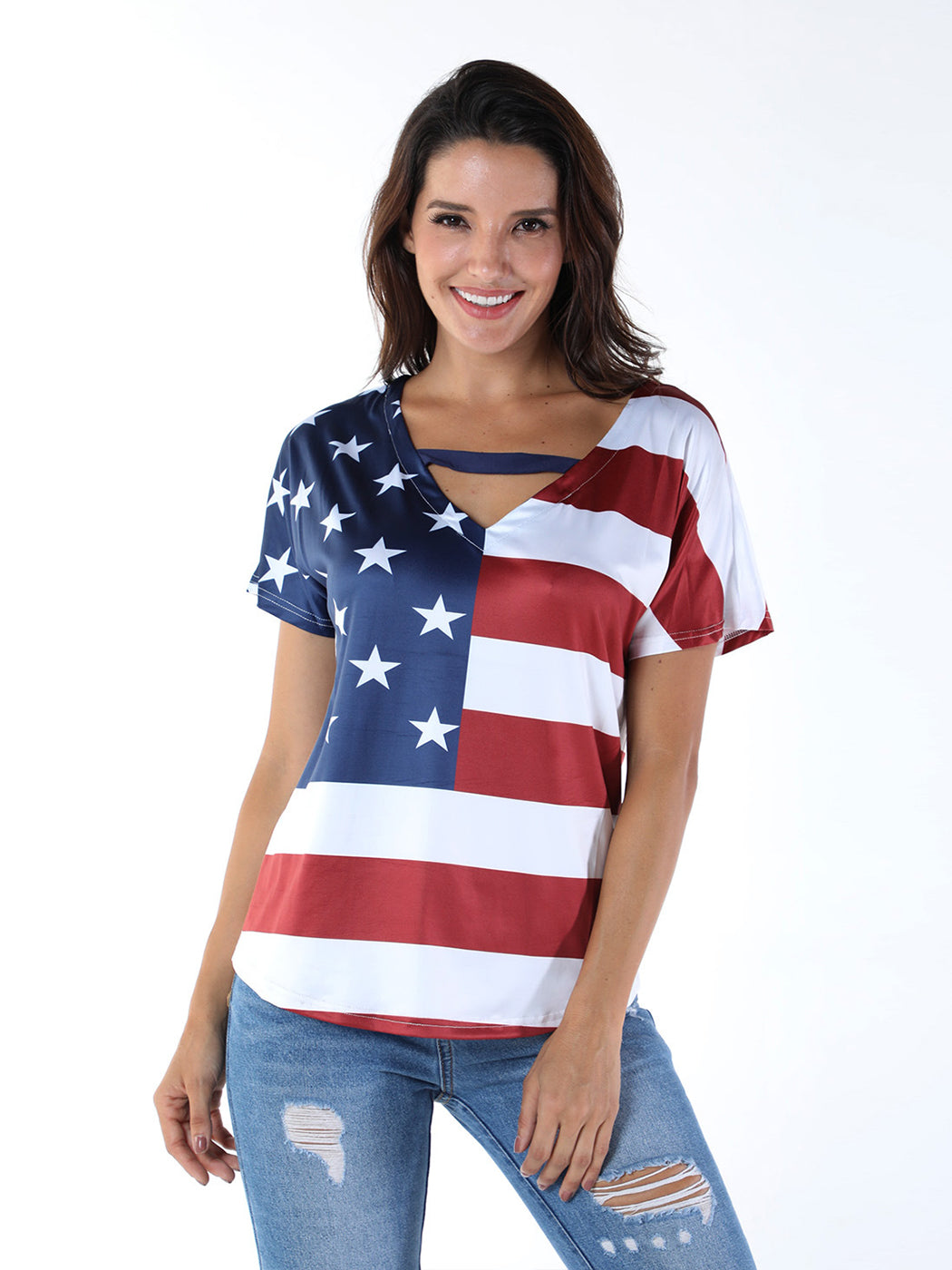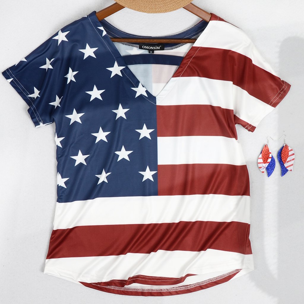 Bring out the all-American girl in you for a forever kind of style. An American flag blouse that shouts celebration whether it's the Fourth of July or not. Wear this flag top at all of you fun 4th of July, Presidents Day and Memorial Day plans.