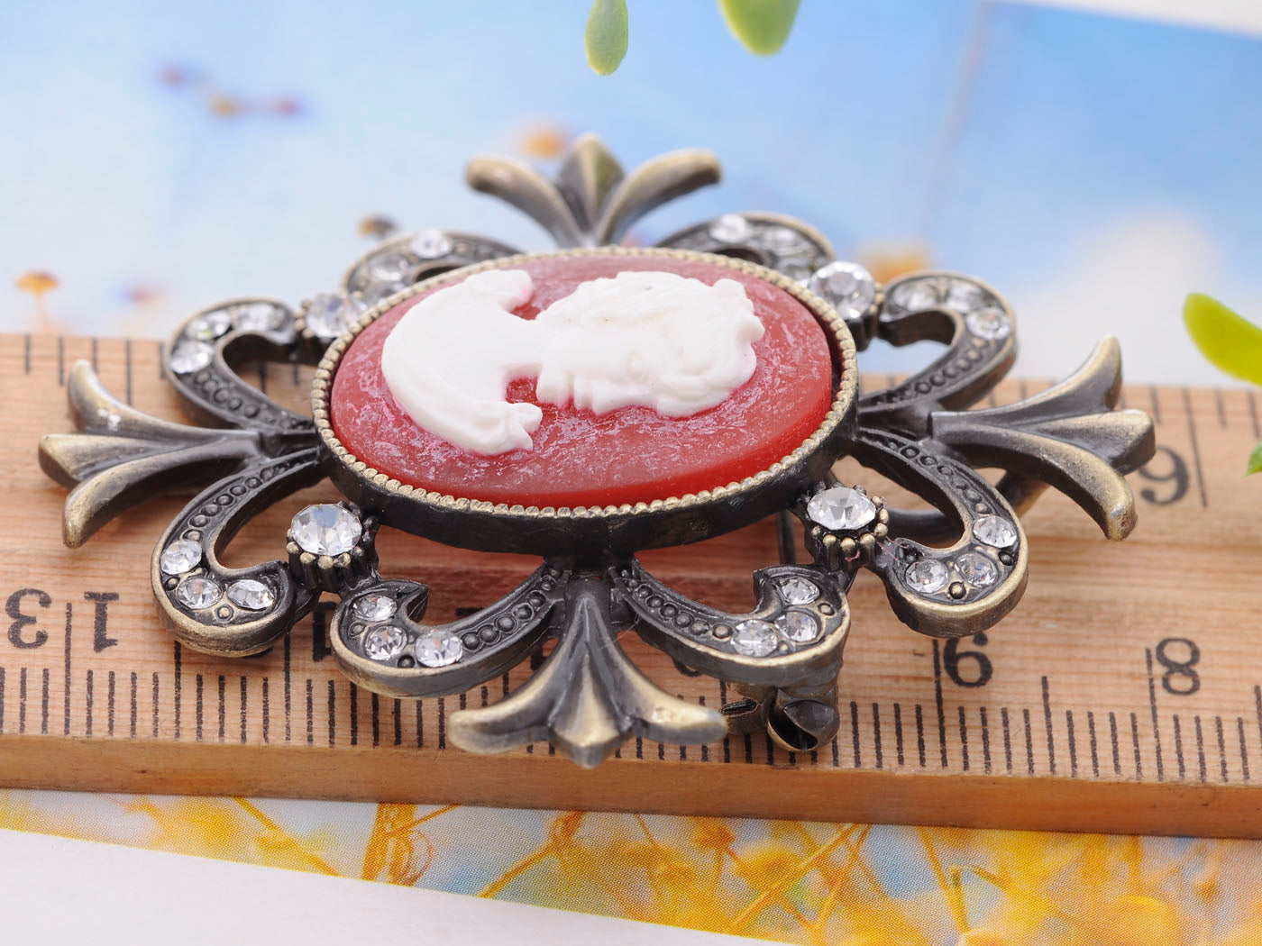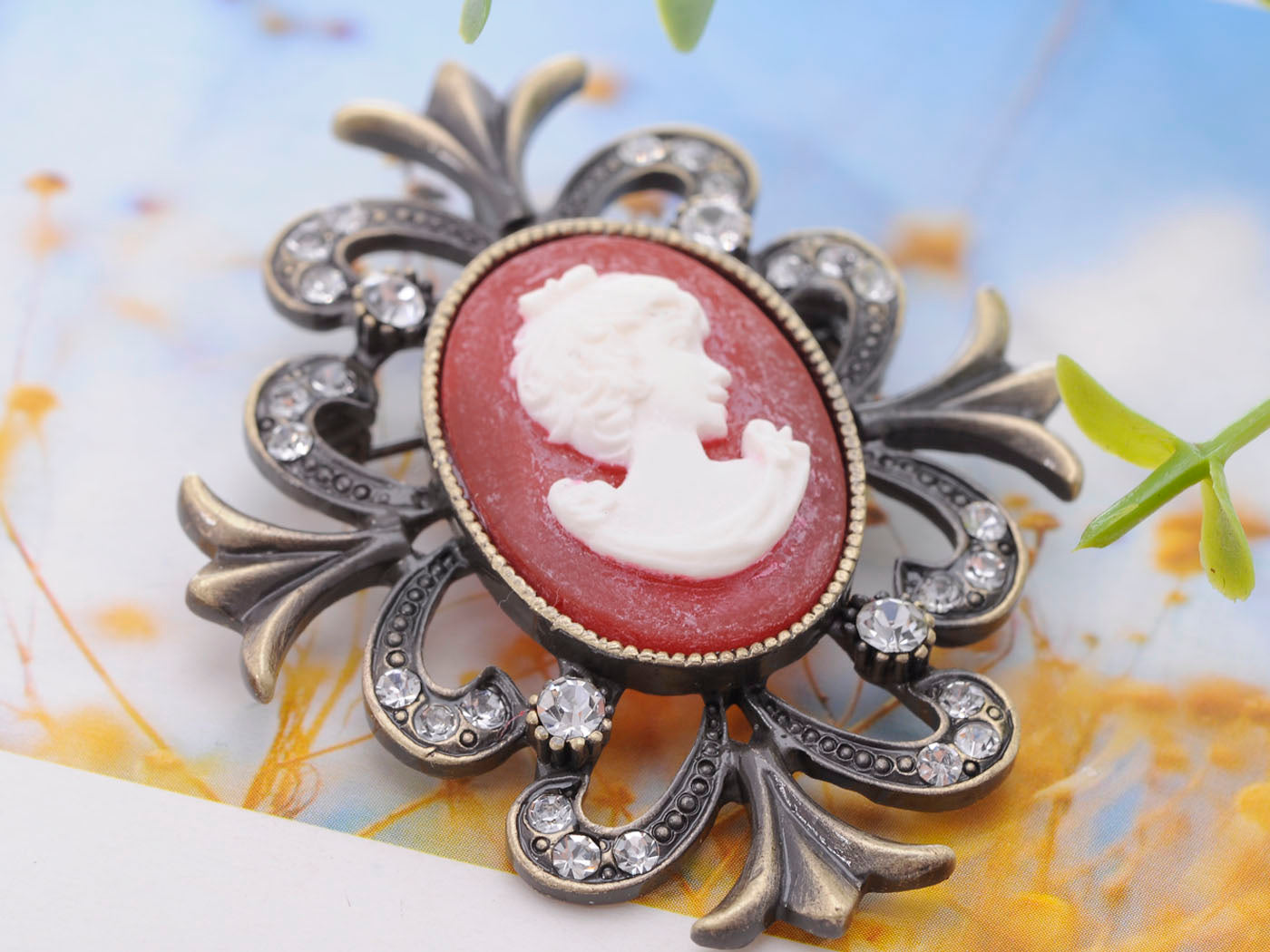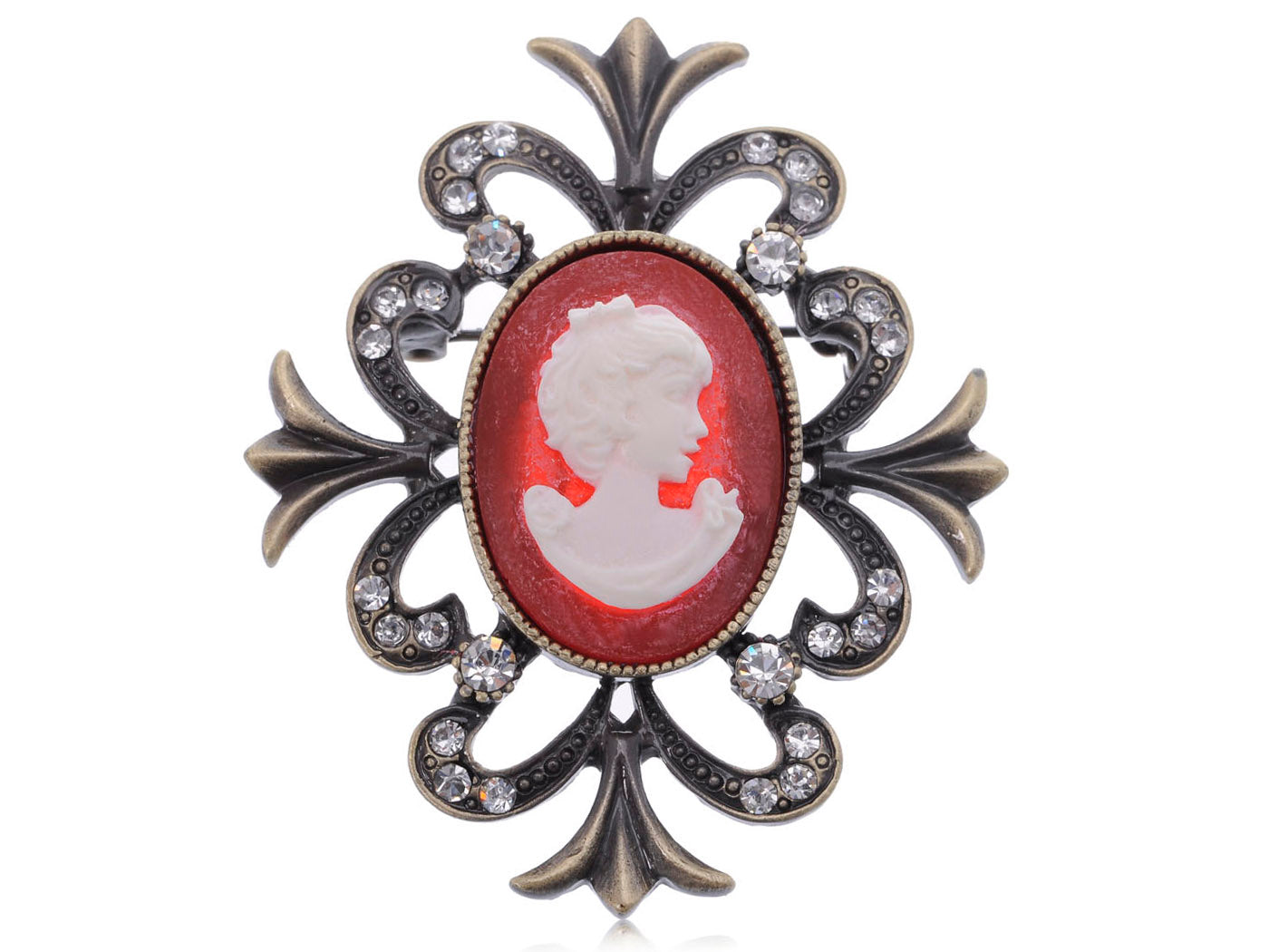 - UNIQUE DESIGN:This piece is an antique inspired cameo with a lovely maiden depicted at its center.Crystal rhinestones adorn the frame of this piece.
