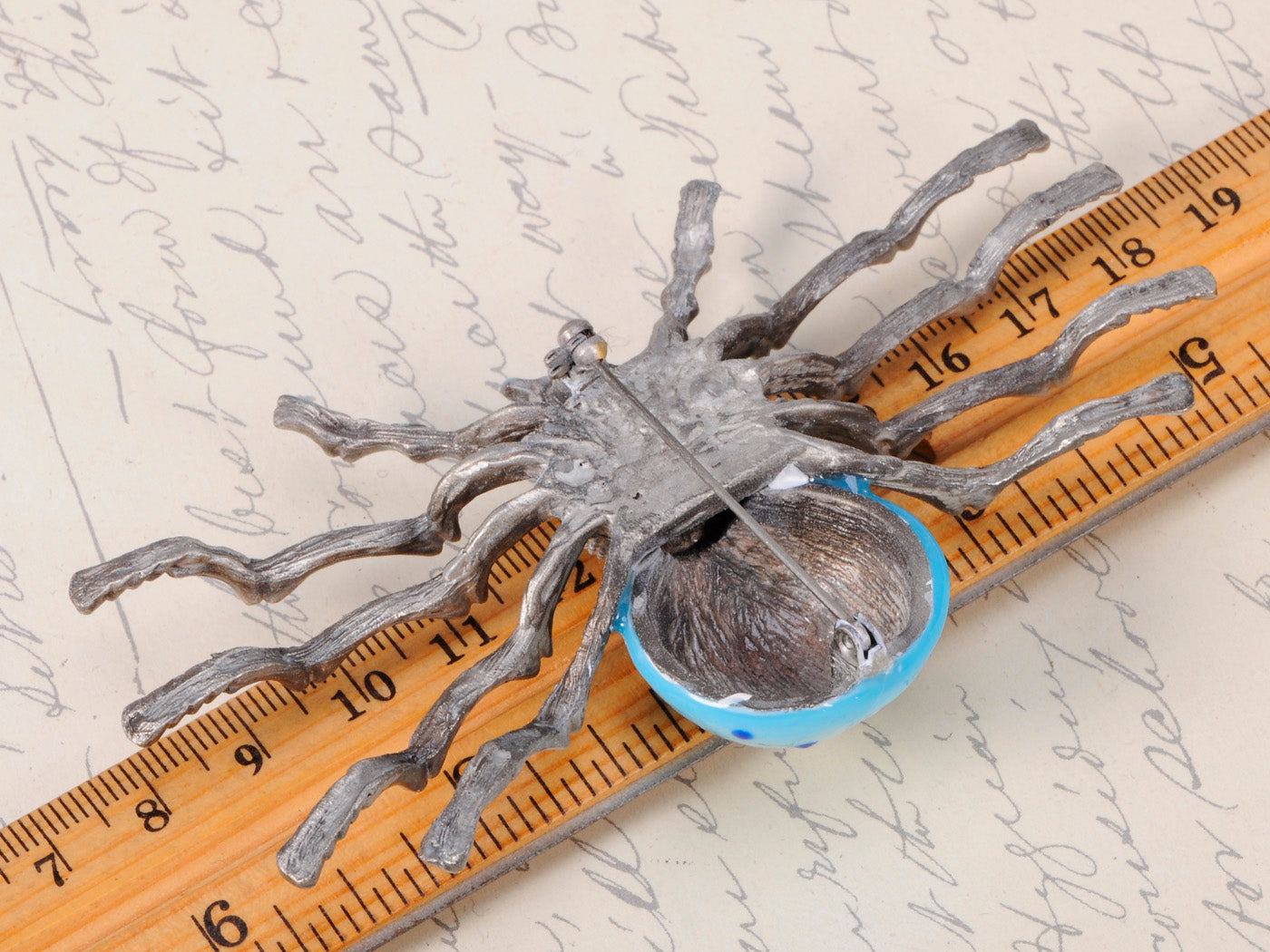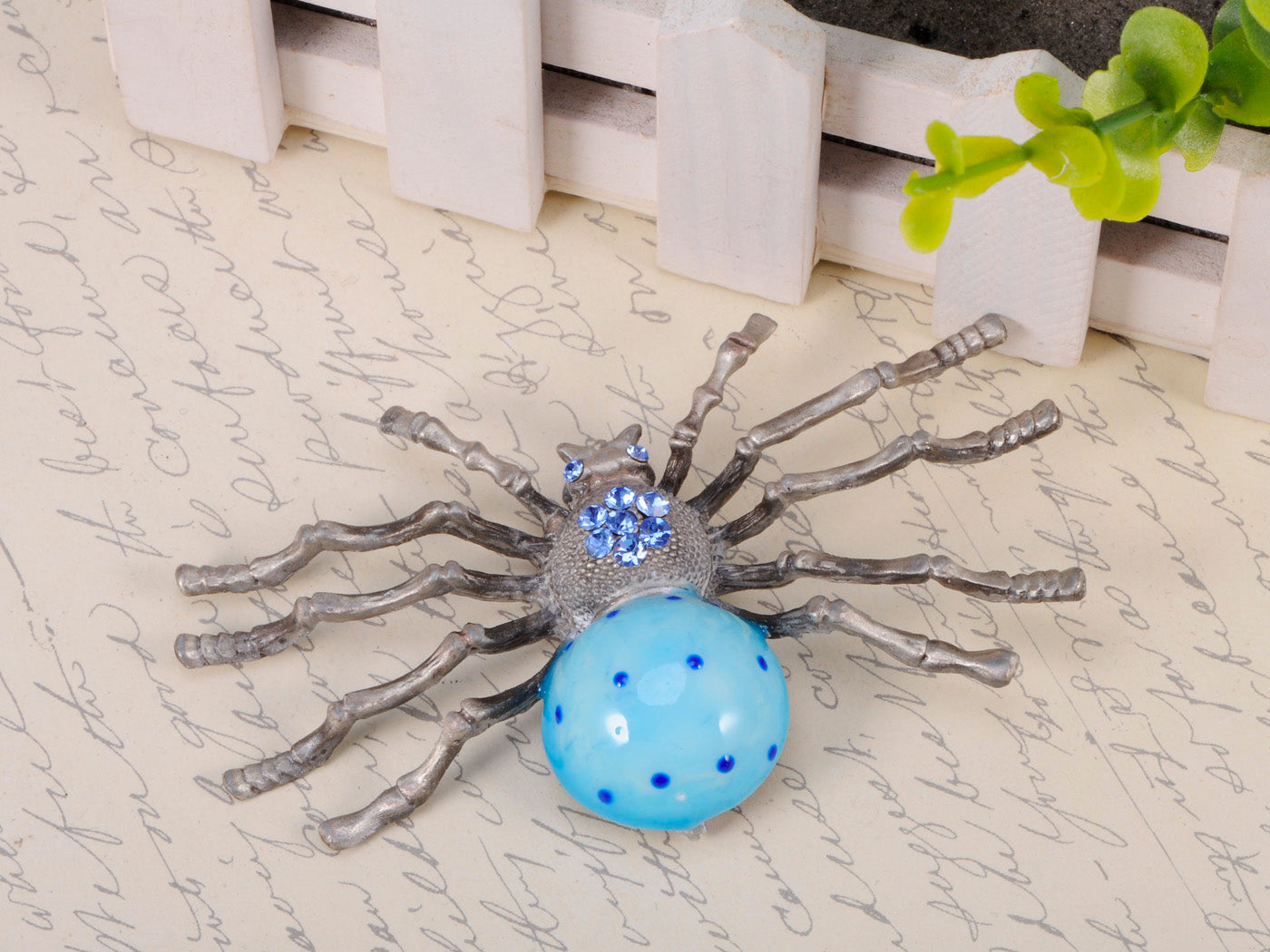 - UNIQUE DESIGN - Brooch featuring vintage-like extra large daddy long leg spider design with synthetic sapphire austrian blue crystal rhinestones enamel paint and silver tone alloy metal.