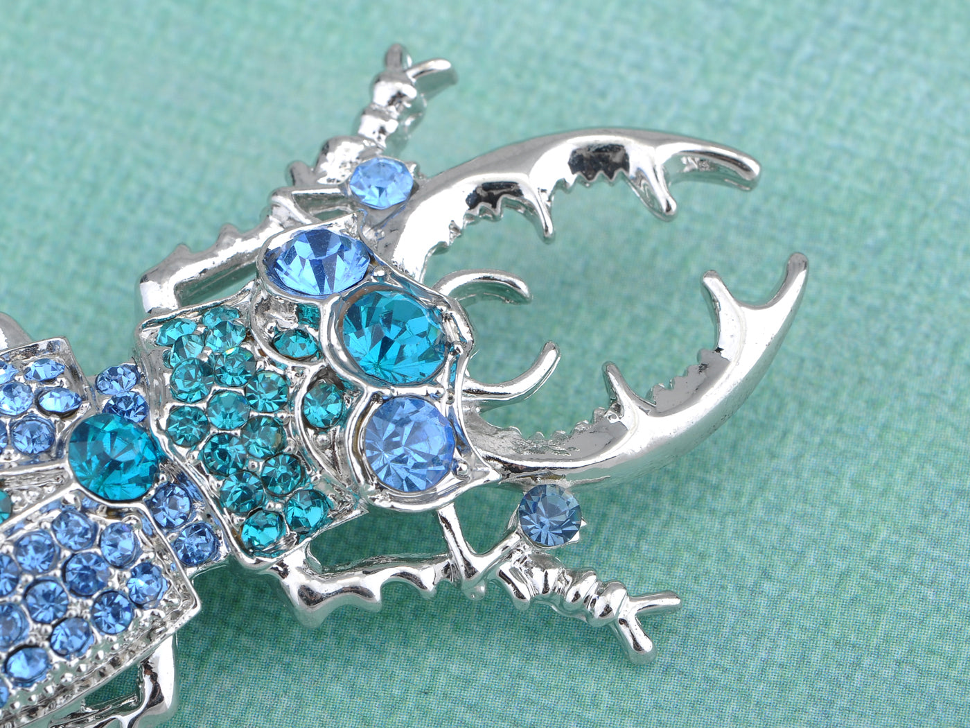- UNIQUE DESIGN - Brooch featuring a bug design with blue colored rhinestones.