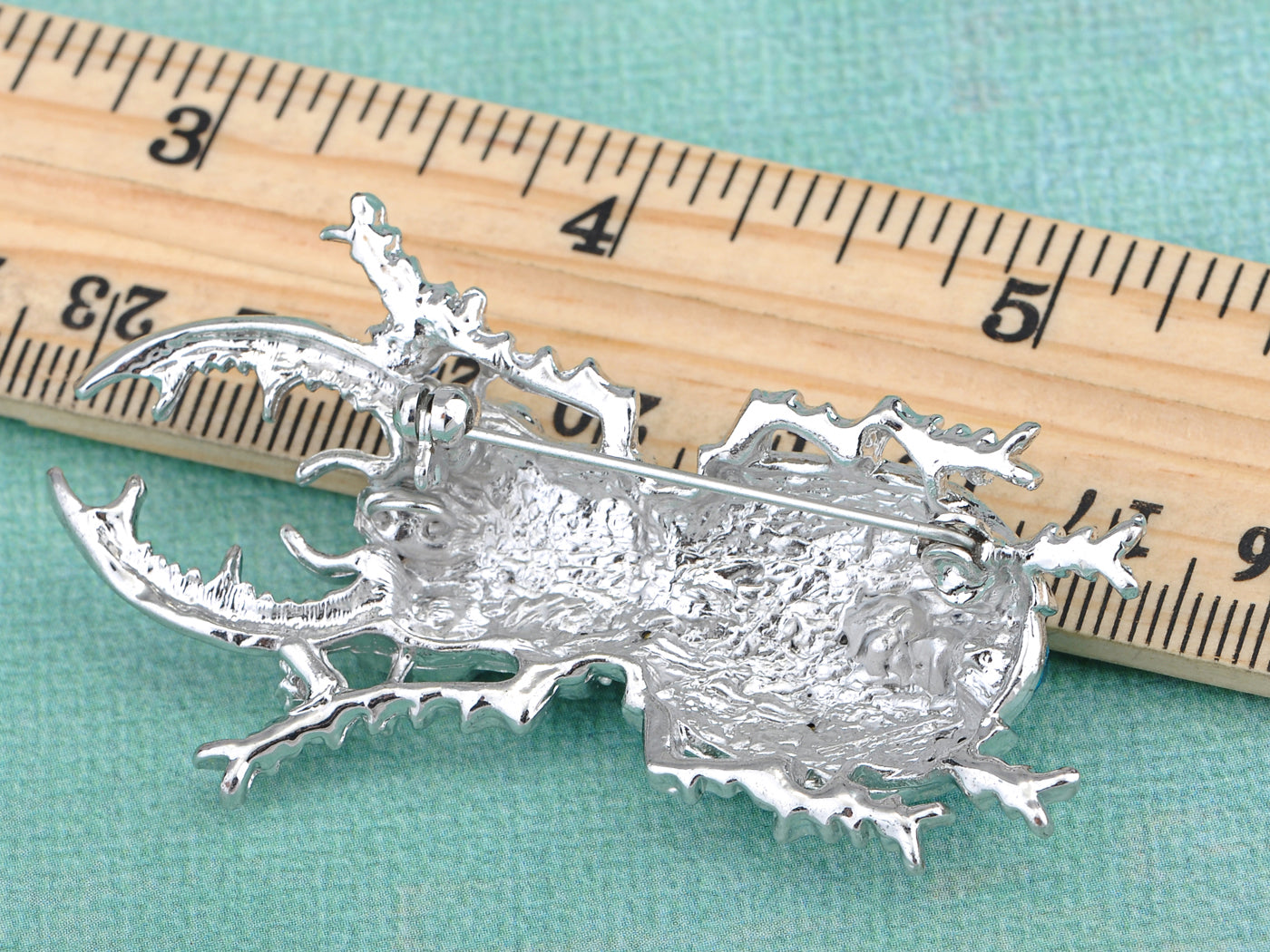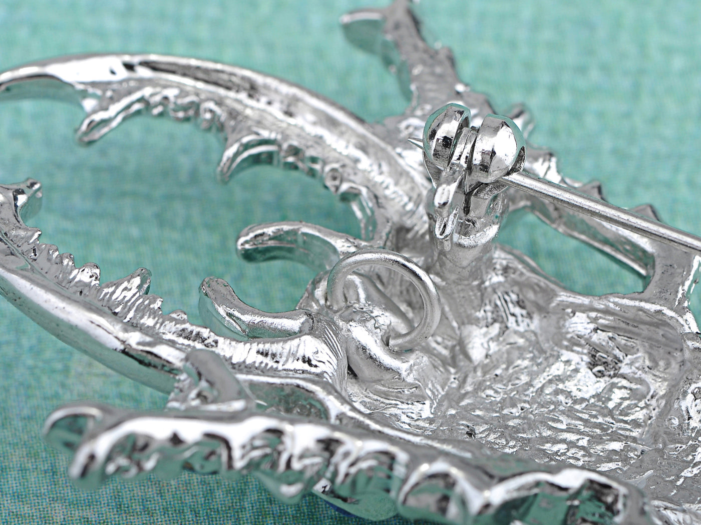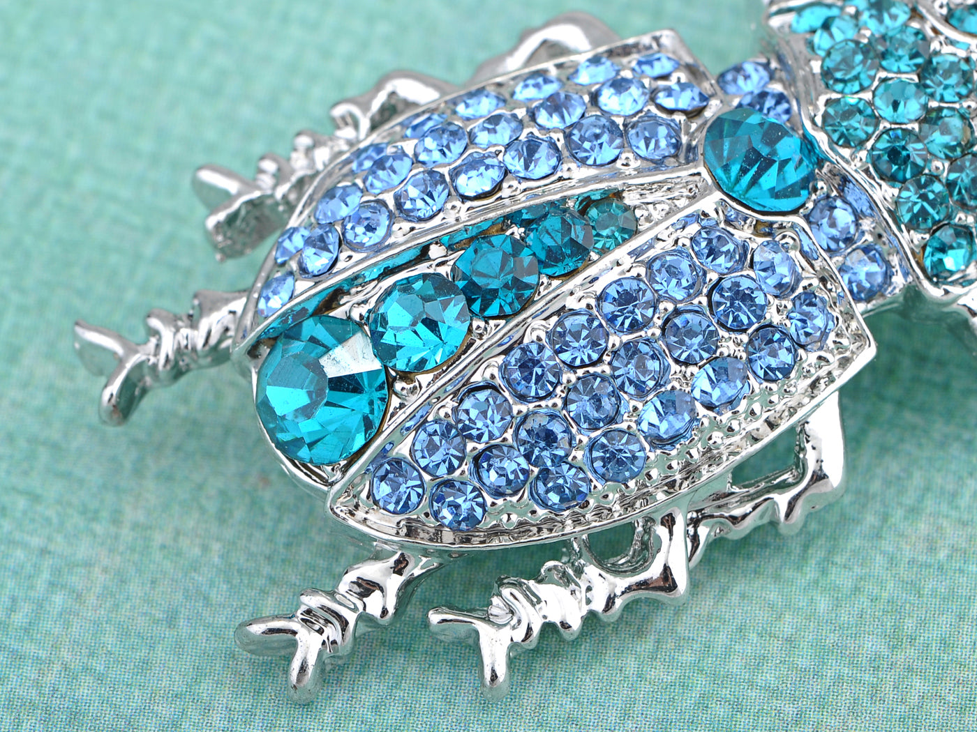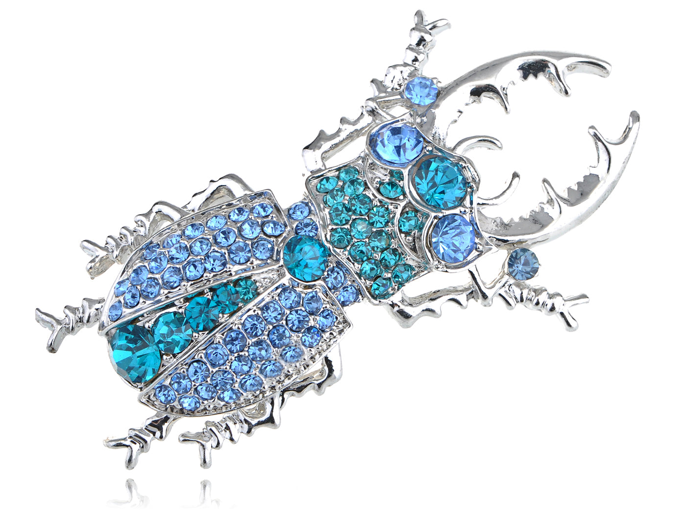 Silver Sapphire Blue Colored Beetle Bug Insect Brooch Pin