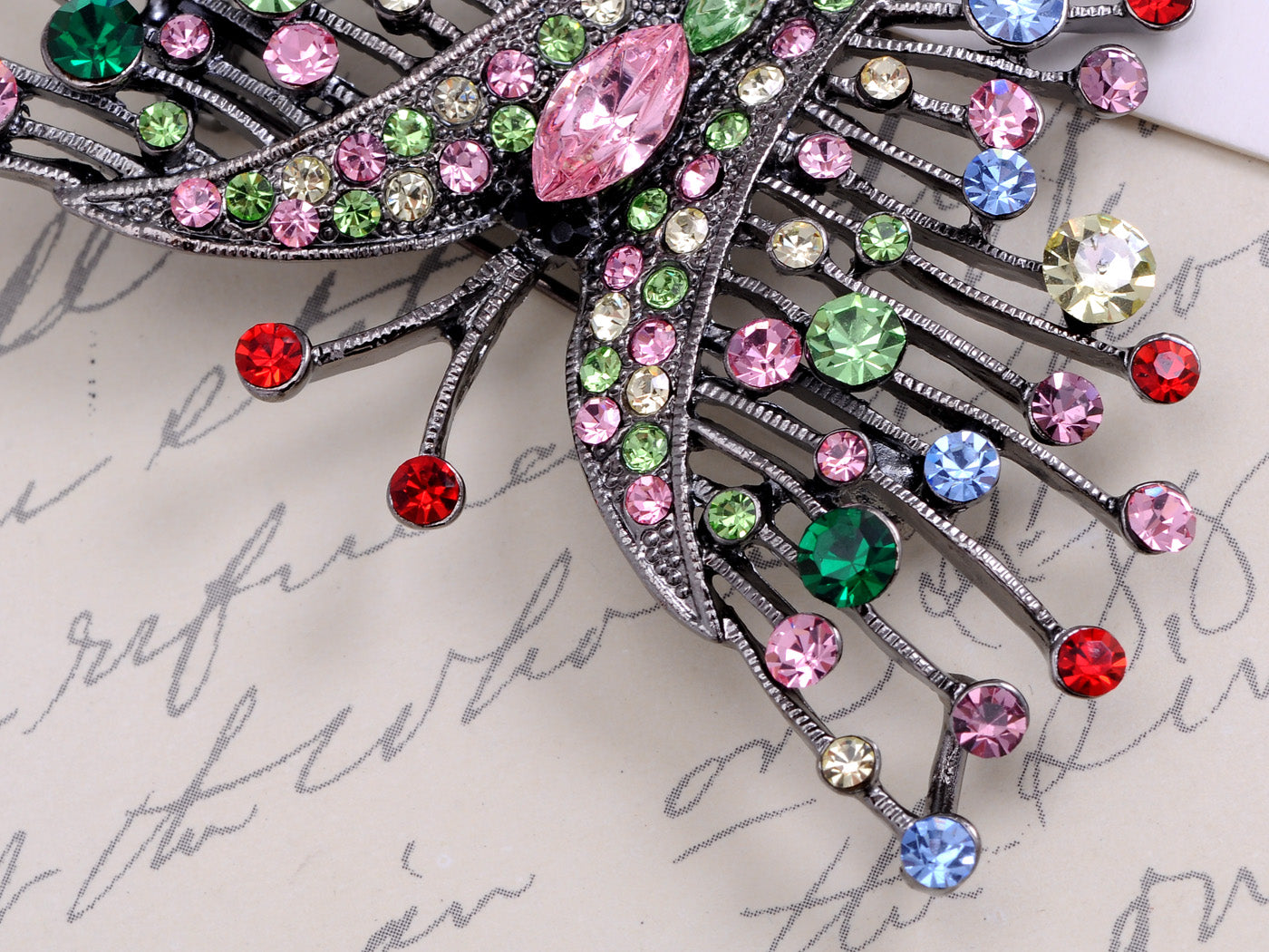 - Designed on vintage bronze toned alloy metal, this gorgeous collectible brooch pin is decorated with Synthetic Peridot, Synthetic Emerald, light rose, and Synthetic Hyacinth crystal rhinestones.