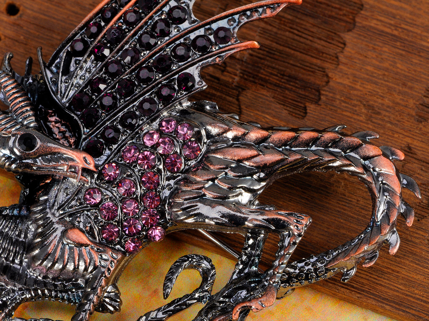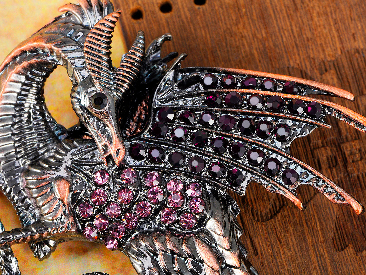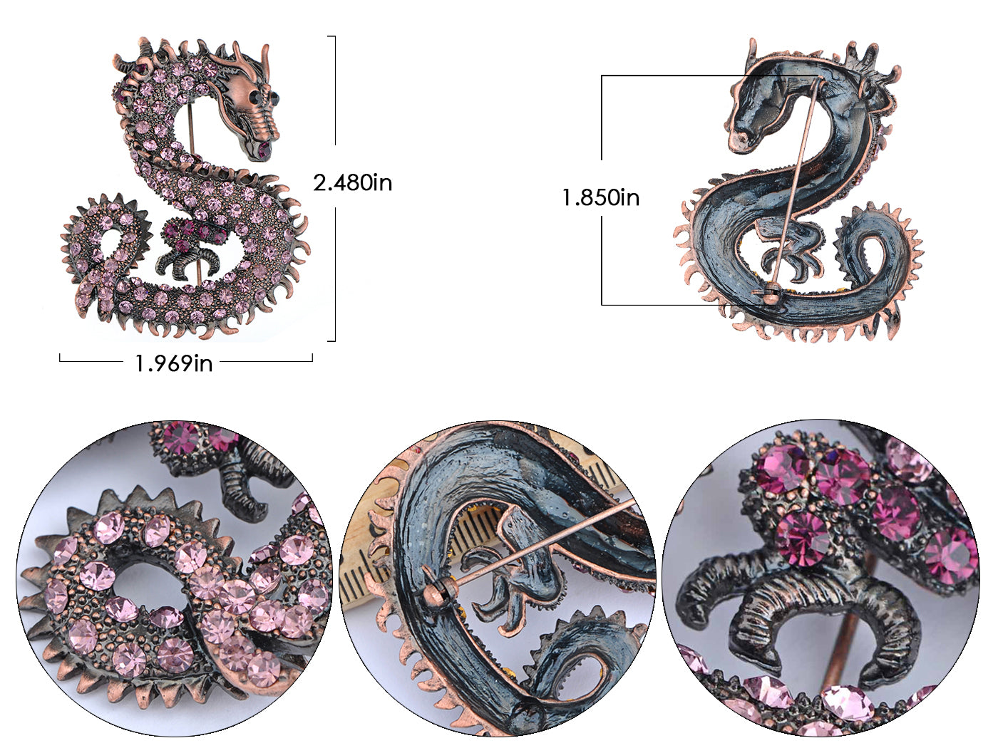 - GORGEOUS CRYSTAL BODY. This dragon features gorgeous, sparkly crystal rhinestones embedded into an antique vintage inspired body. Rose pink crystals decorate the body giving the scales a luxurious look while darker crystals decorate and add an elegant dep