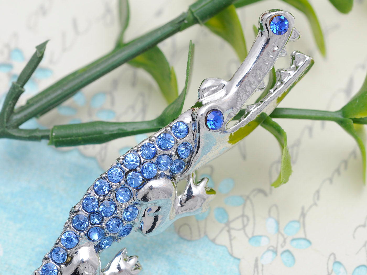 Sapphire Blue Crocodile Alligator Animal Pin Brooch