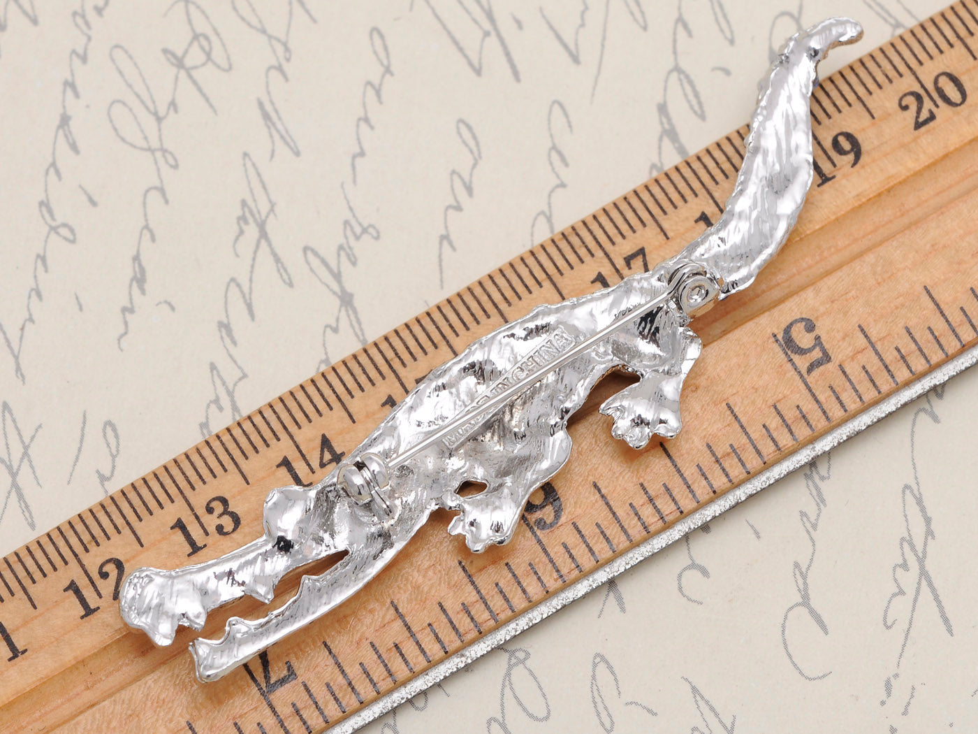 - UNIQUE DESIGN - Brooch featuring Crocodile alligator design with synthetic sapphire blue crystal rhinestone and silver tone alloy metal.