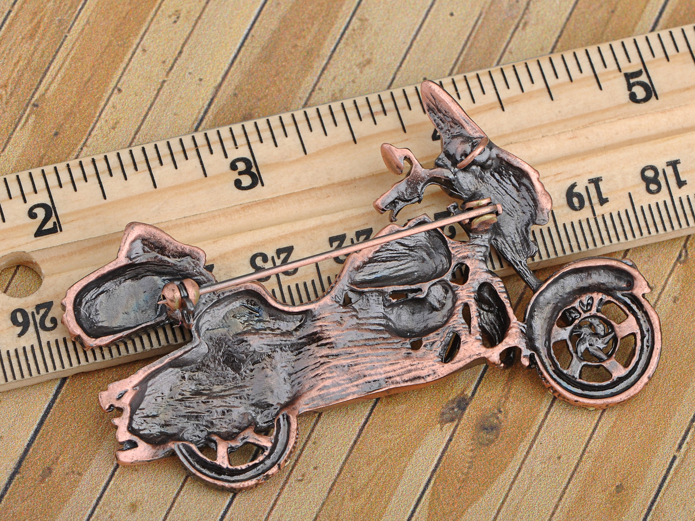 - VERSATILE BROOCH- This darling bronze motorcycle brooch is a great everyday accessory. Perfect to wear to work, school, and more. Pin it on a jacket, lapel, hat, bag, and so forth. It will add a fun touch wherever you chose to place it.