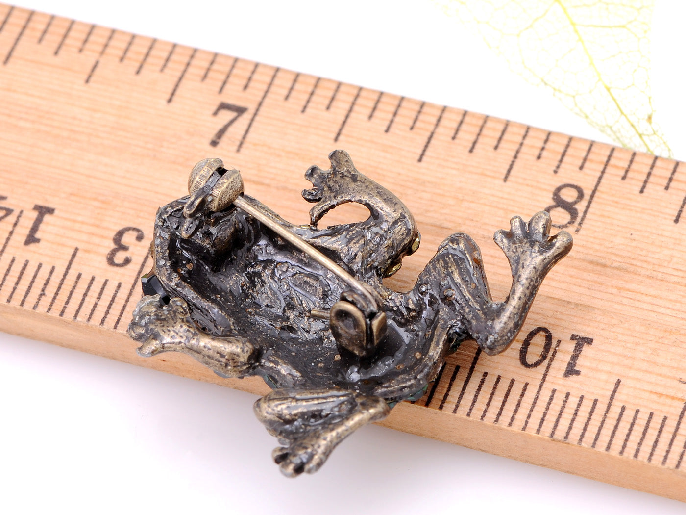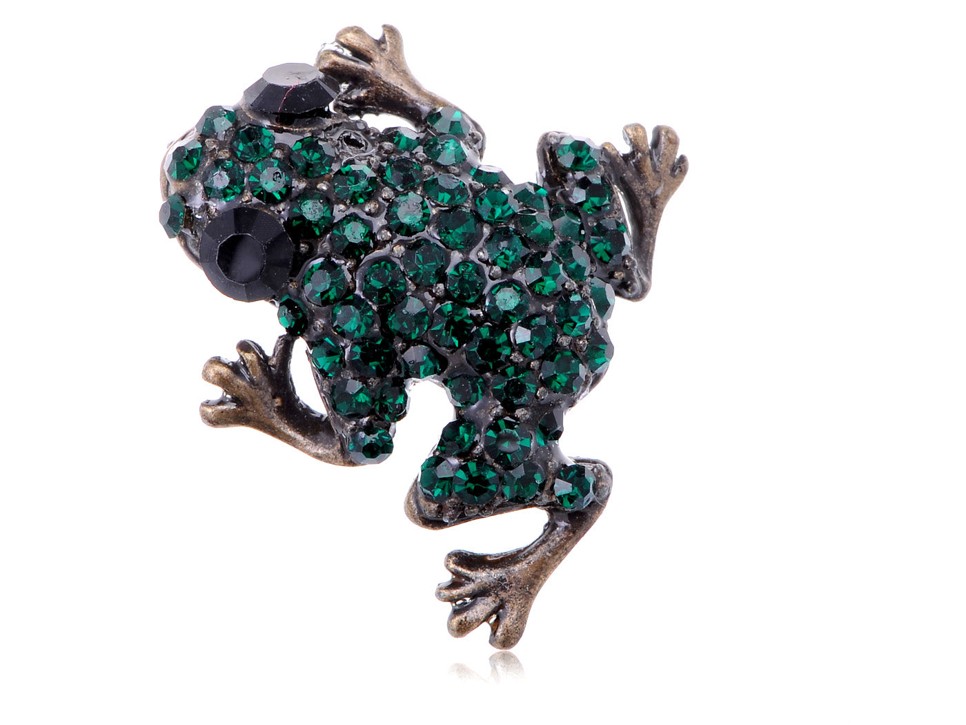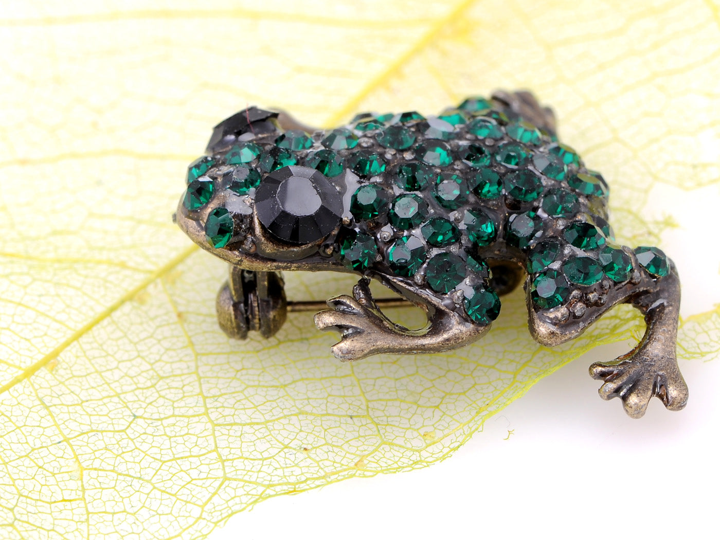 - UNIQUE DESIGN - Animal brooch featuring frog design with black and green colored rhinestones.