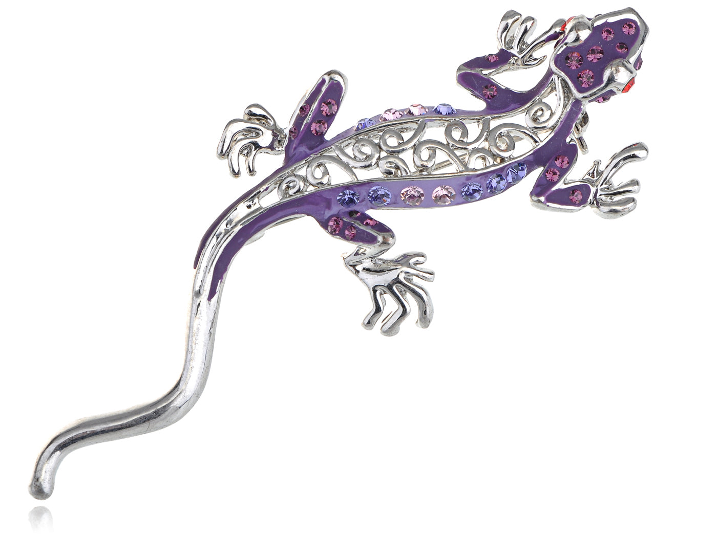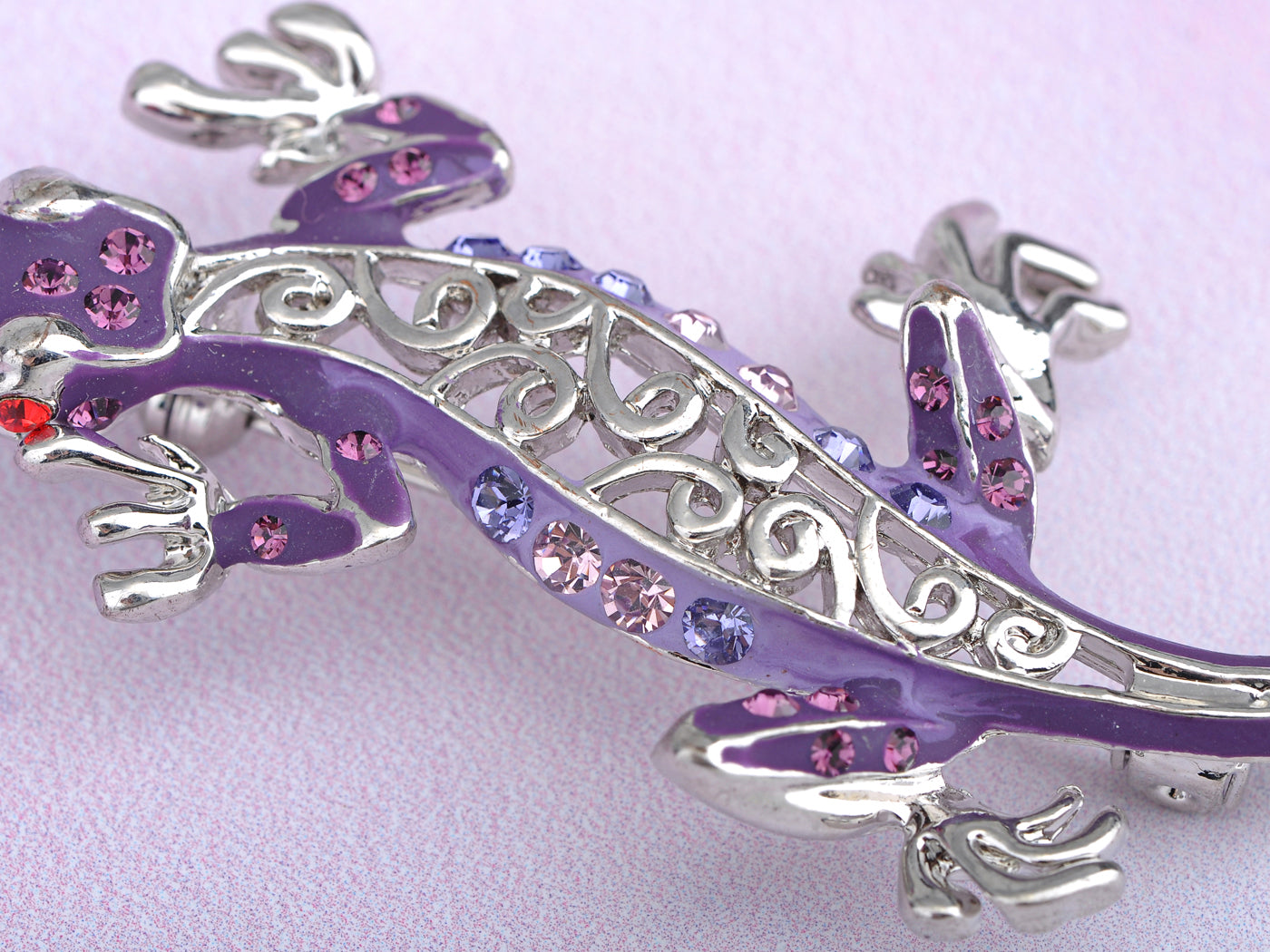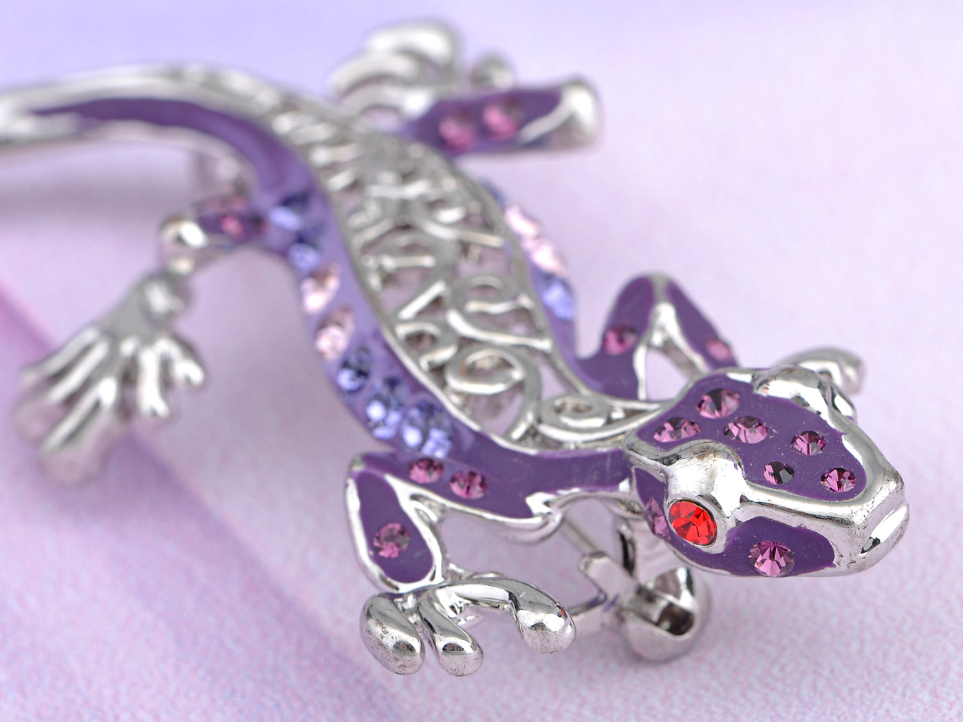 Amethyst Purple Crawl Gecko Animal Pin Brooch