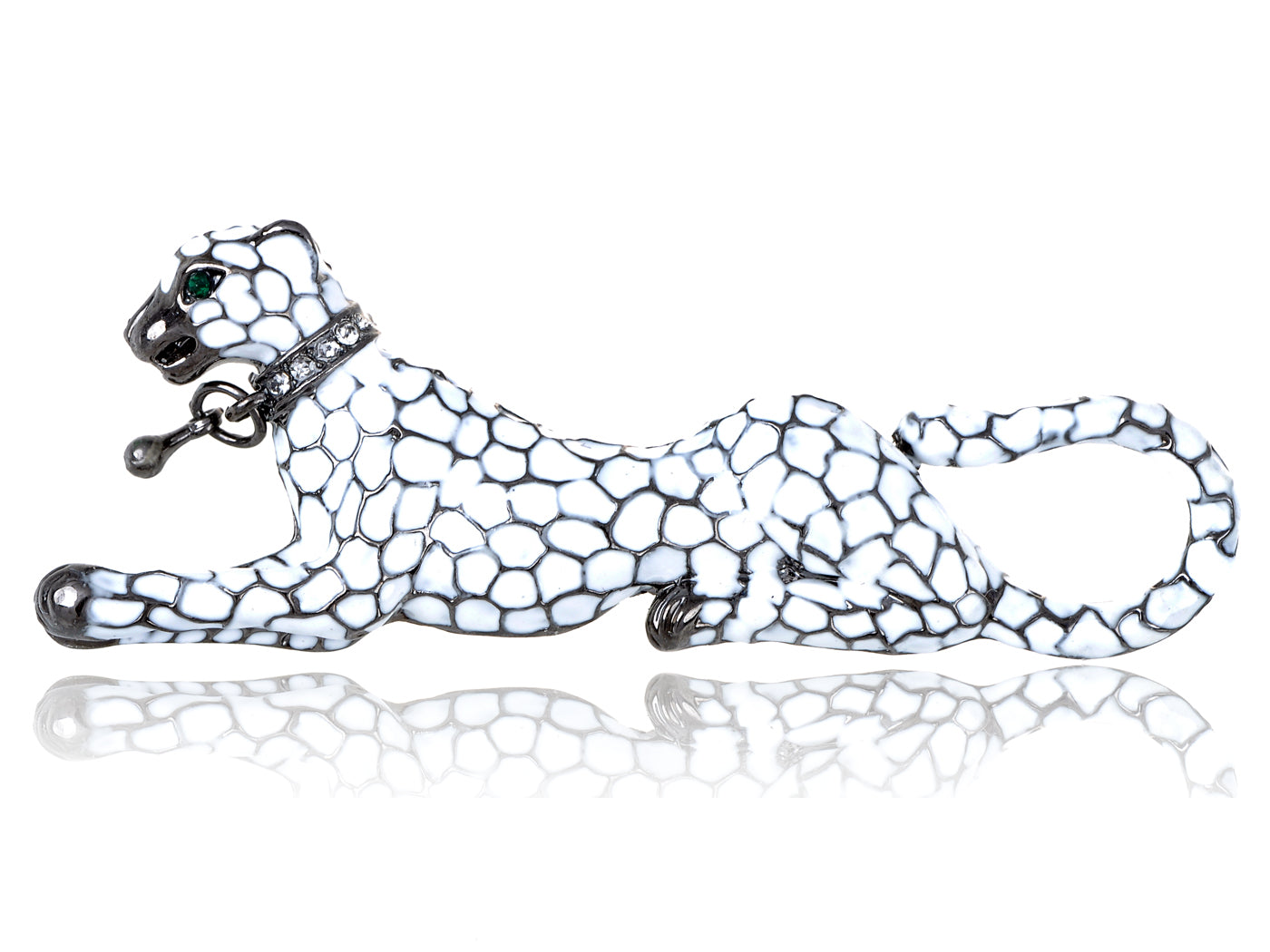 Crouching Laying Cheetah Jaguar Blue Eyed Pin Brooch