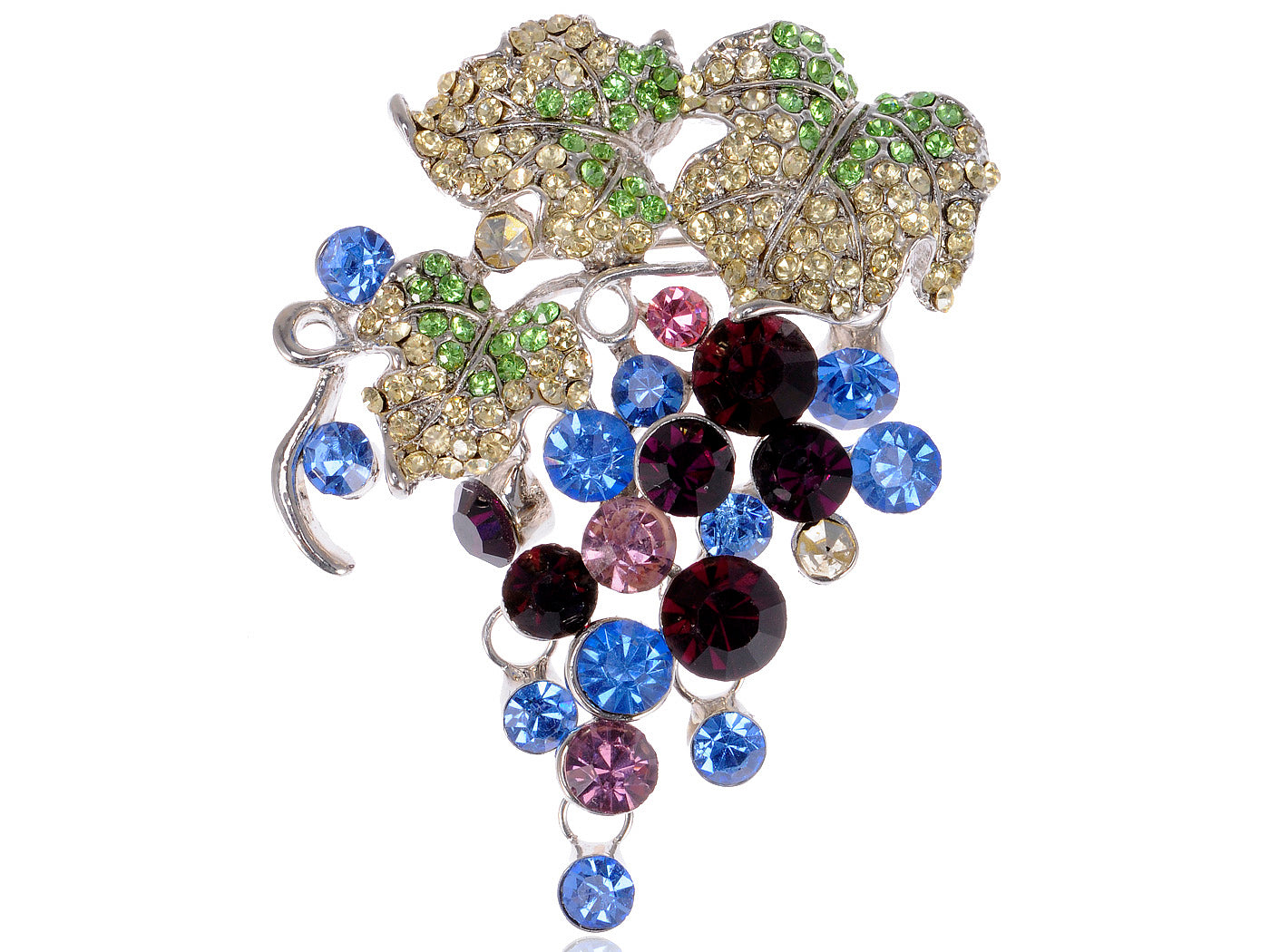 Gewurztraminer Multi Color Grapes Leaves Fruit Pin Brooch