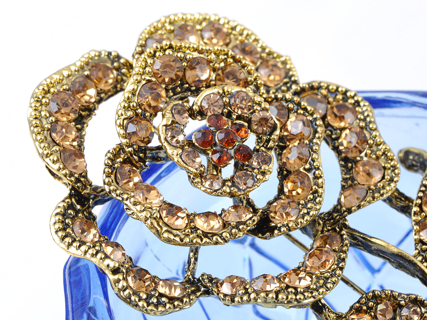 Vintage Amber Topaz Brown Rose Petal Flower Stem Pin Brooch
