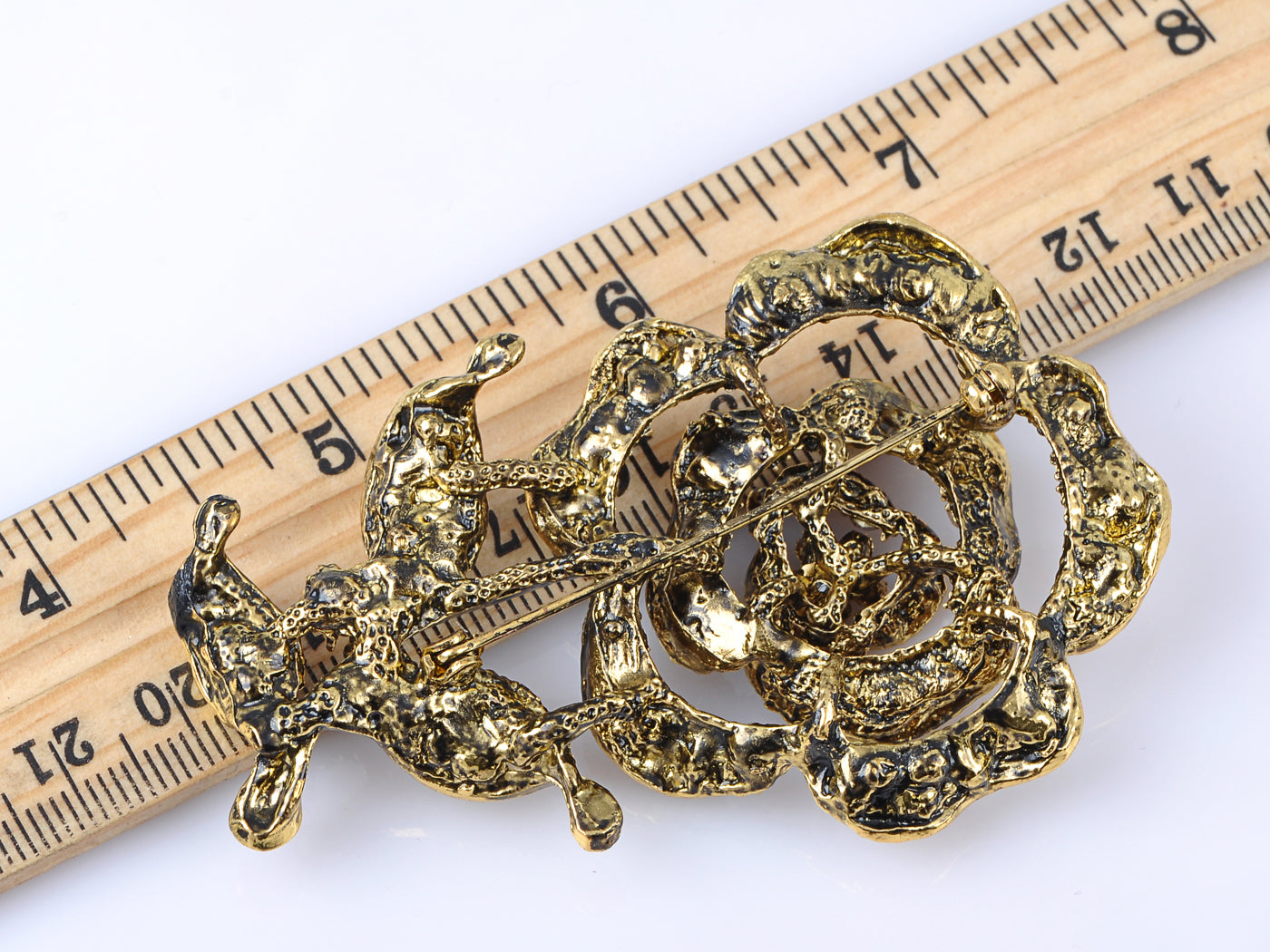 - Designed on gold toned alloy metal, this lovely trendy fashion statement brooch pin is decorated with rhinestone crystals. It will make a great gift or great addition to any collection. Please scroll down for more pictures.