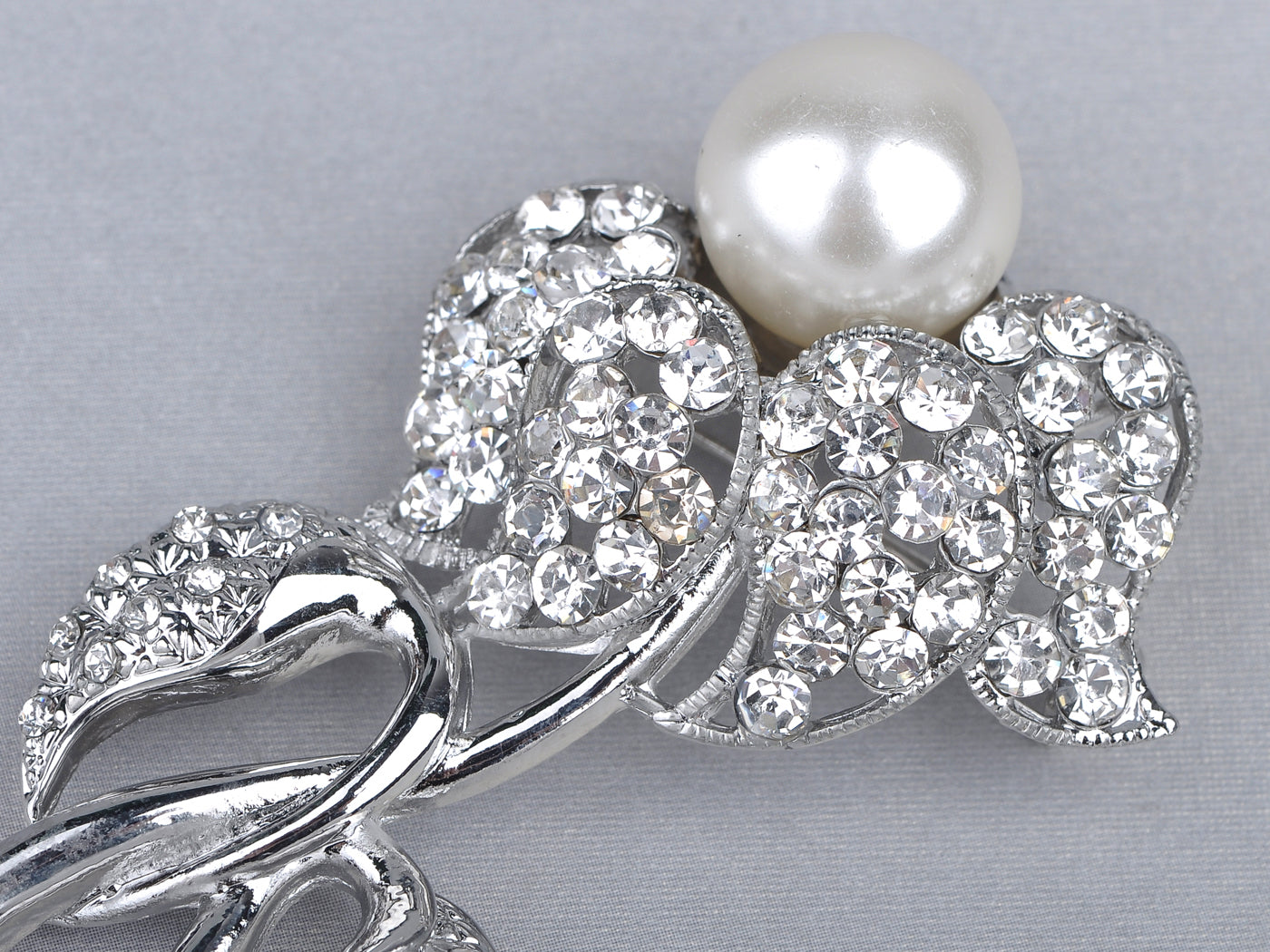 - CUTE FLOWER DESIGN-Faux pearl bead flower bud bouquet crystal rhinestones bridal