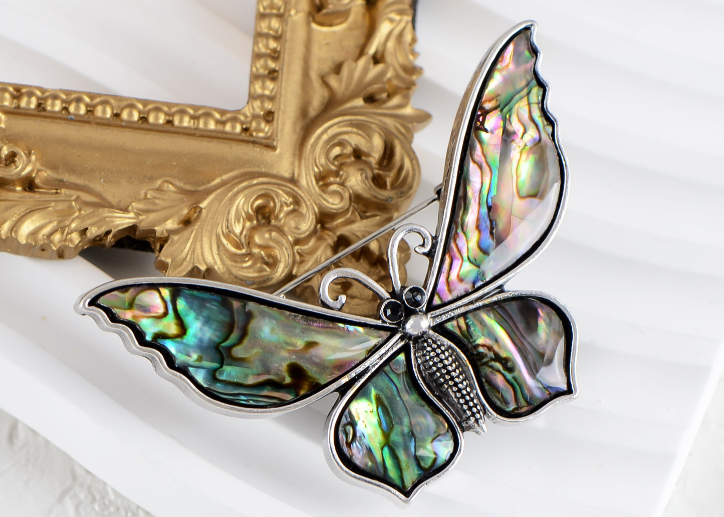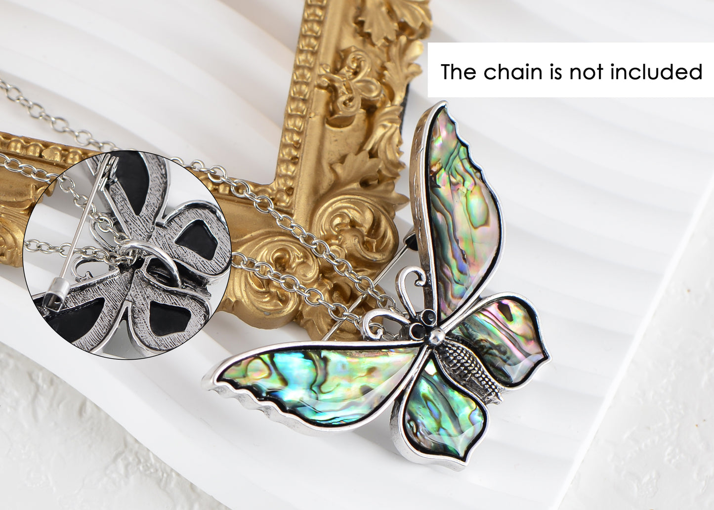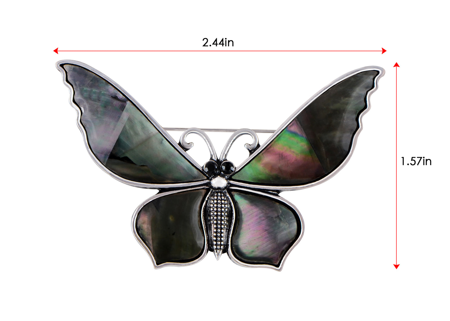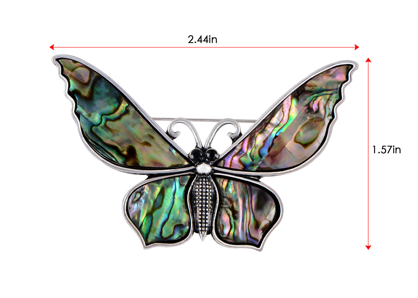 - UNIQUE DESIGN - This vintage brooch featuring a butterfly design, adorned with natural abalone shell color stones, and silvery tone metal alloy base.
