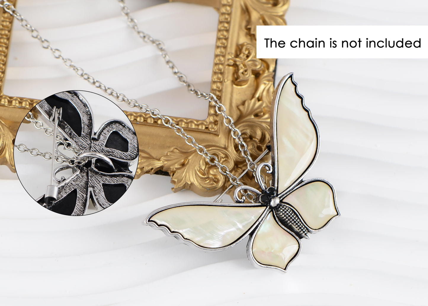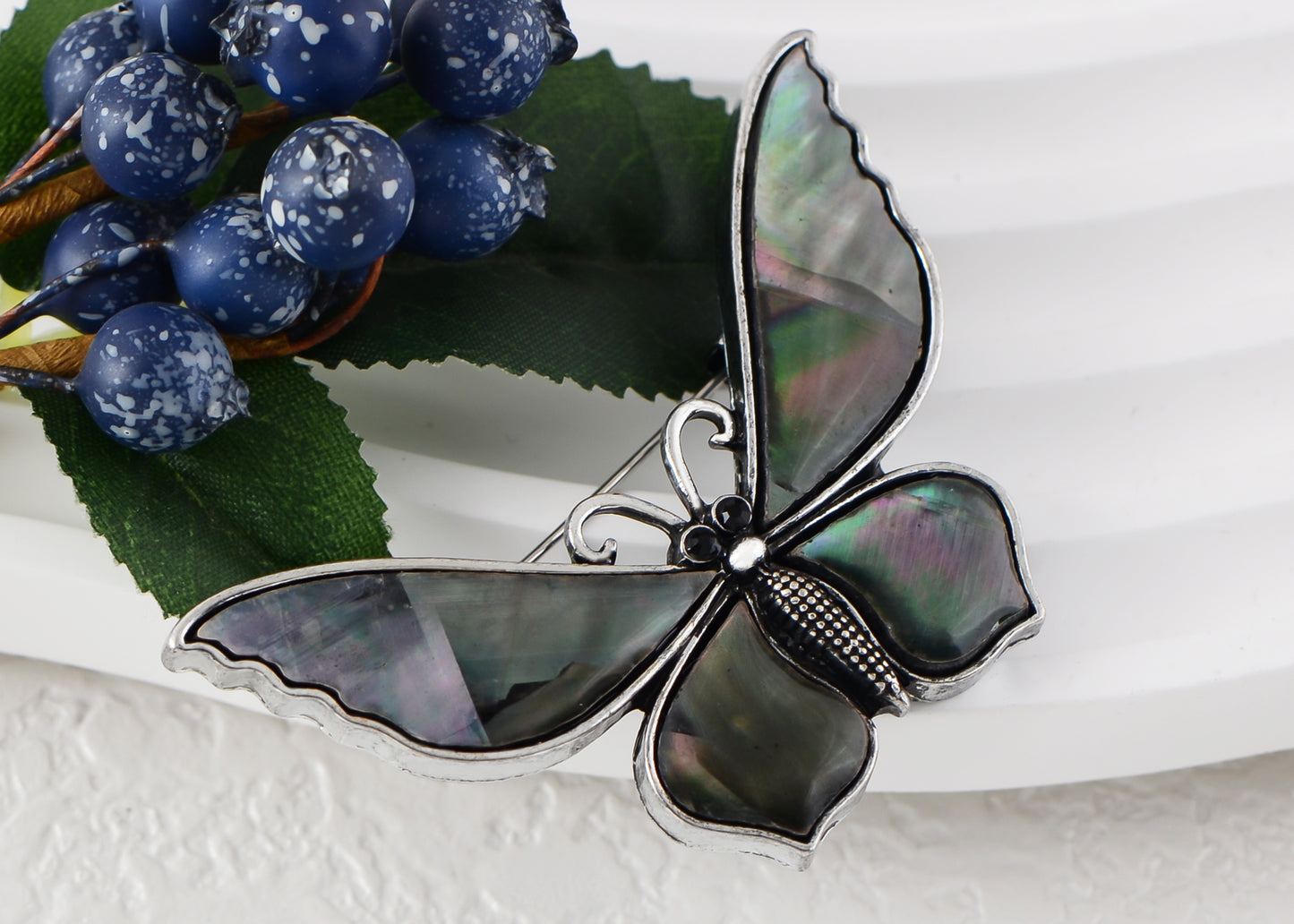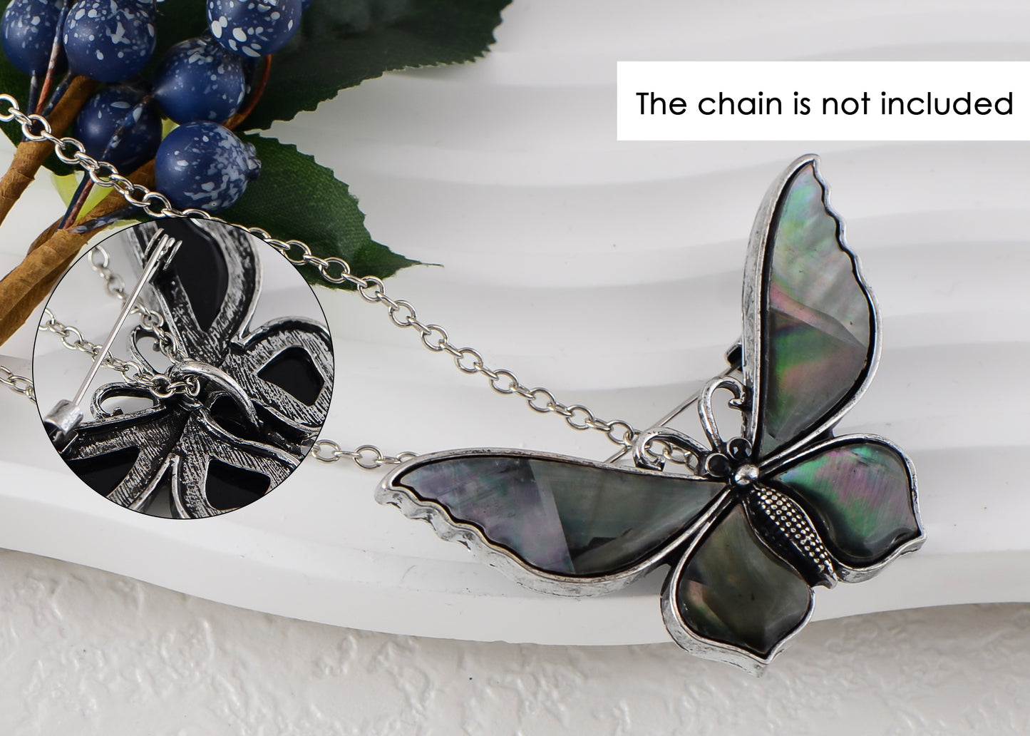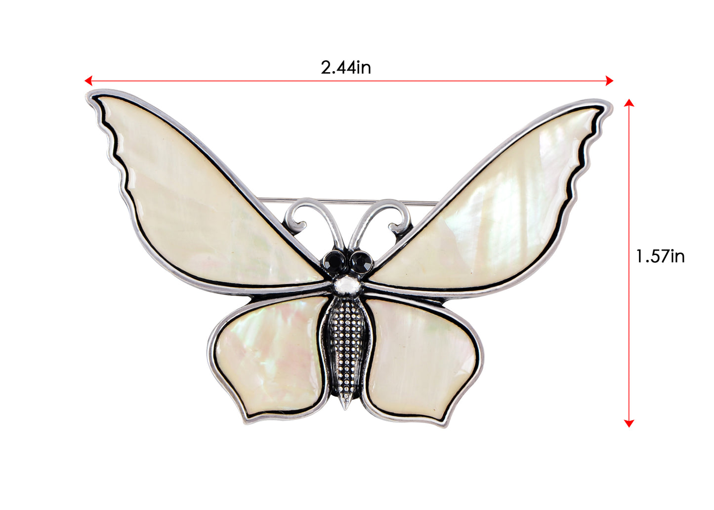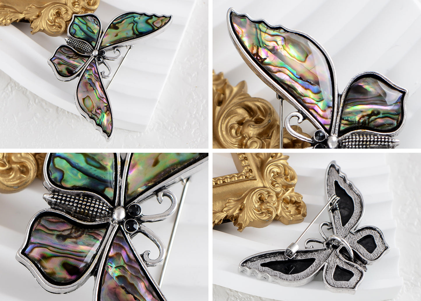 - UNIQUE DESIGN - This vintage brooch featuring a butterfly design, adorned with natural abalone shell color stones, and silvery tone metal alloy base.