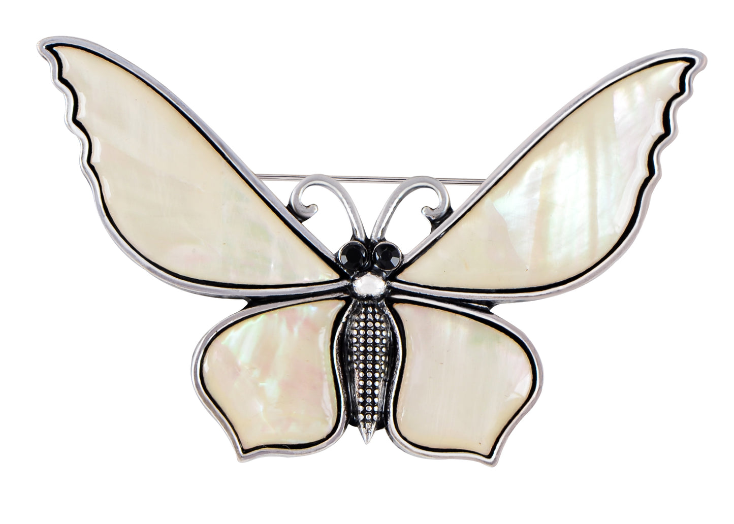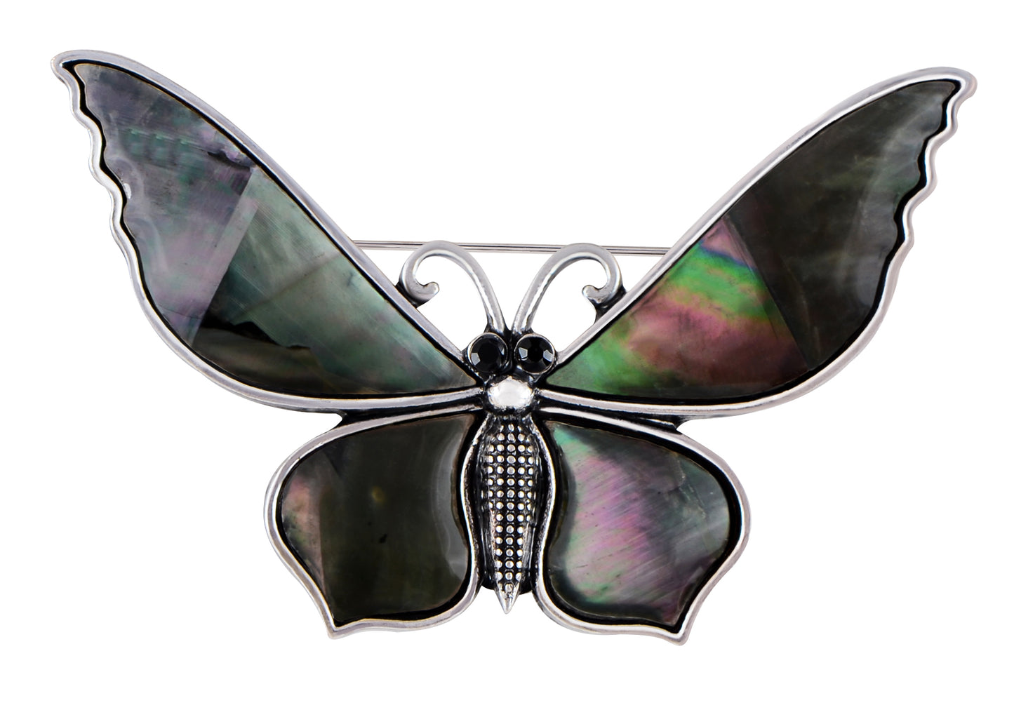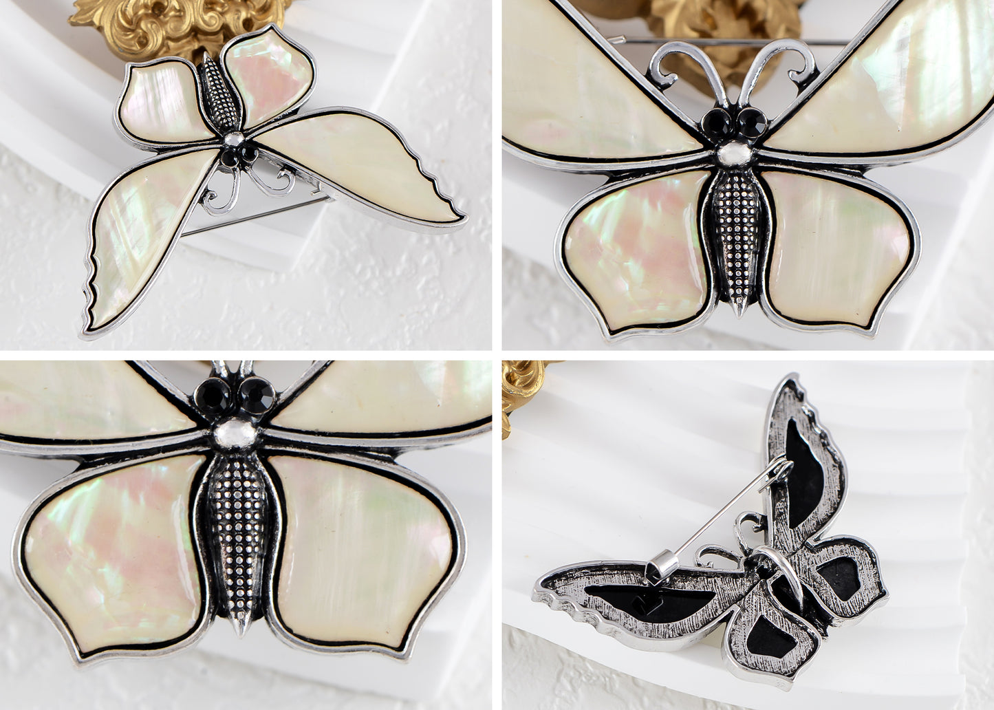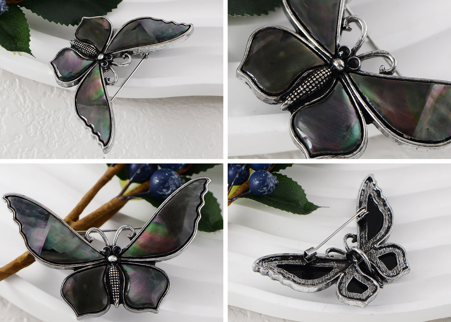 - UNIQUE DESIGN - This vintage brooch featuring a butterfly design, adorned with natural abalone shell color stones, and silvery tone metal alloy base.
