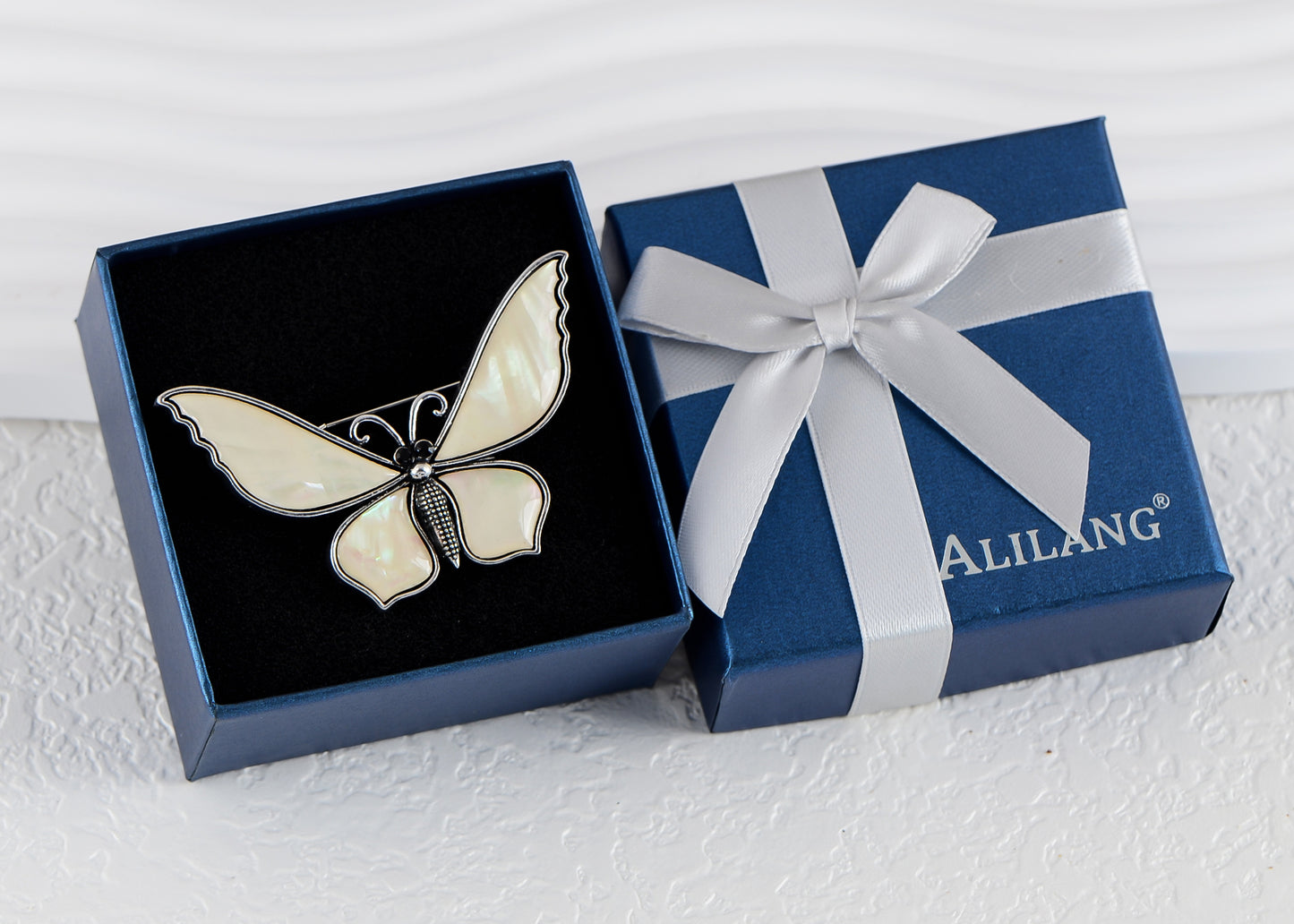 Alilang Silvery Tone Natural Abalone Shell Butterfly Insect Brooch Pin Pendant
