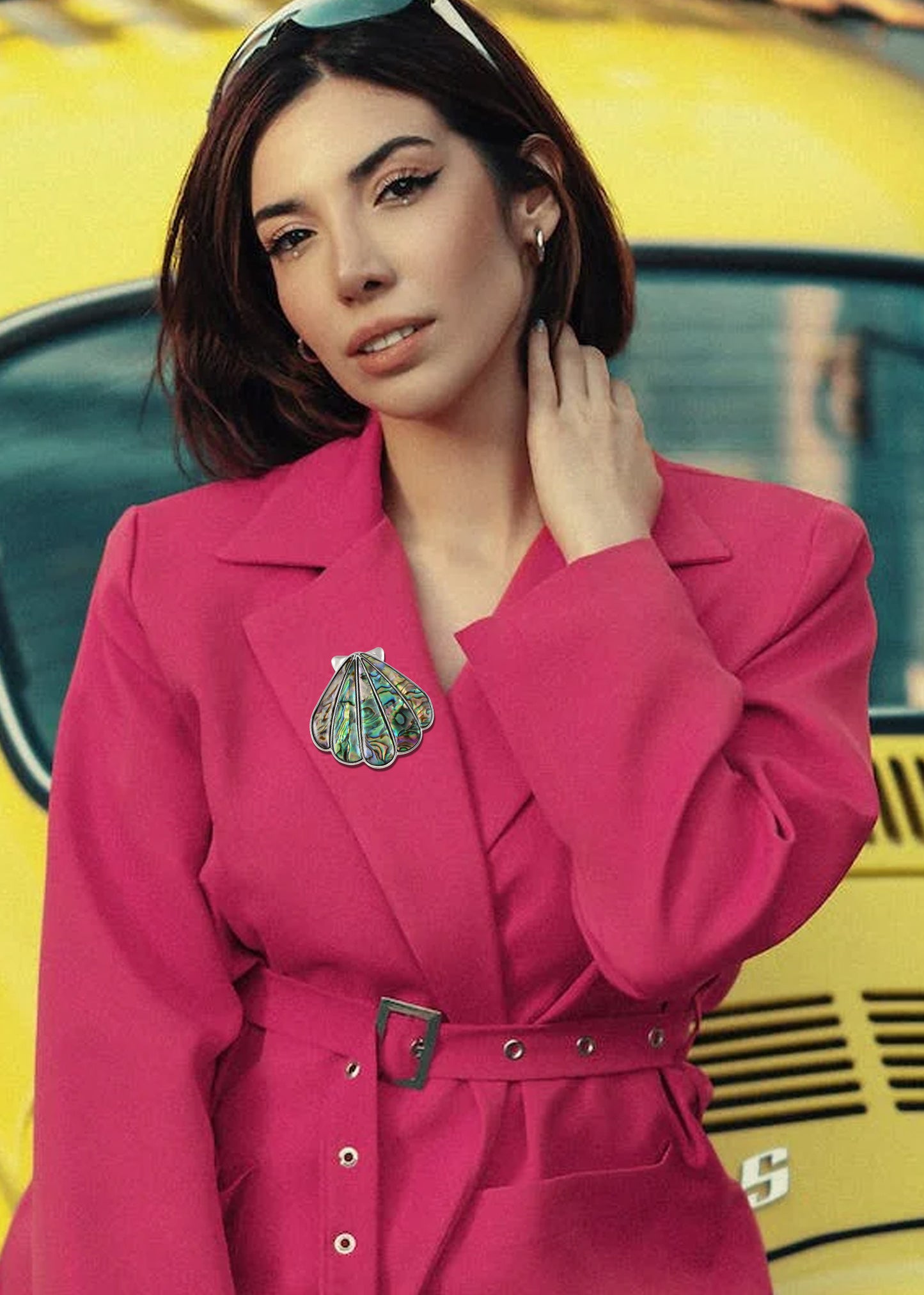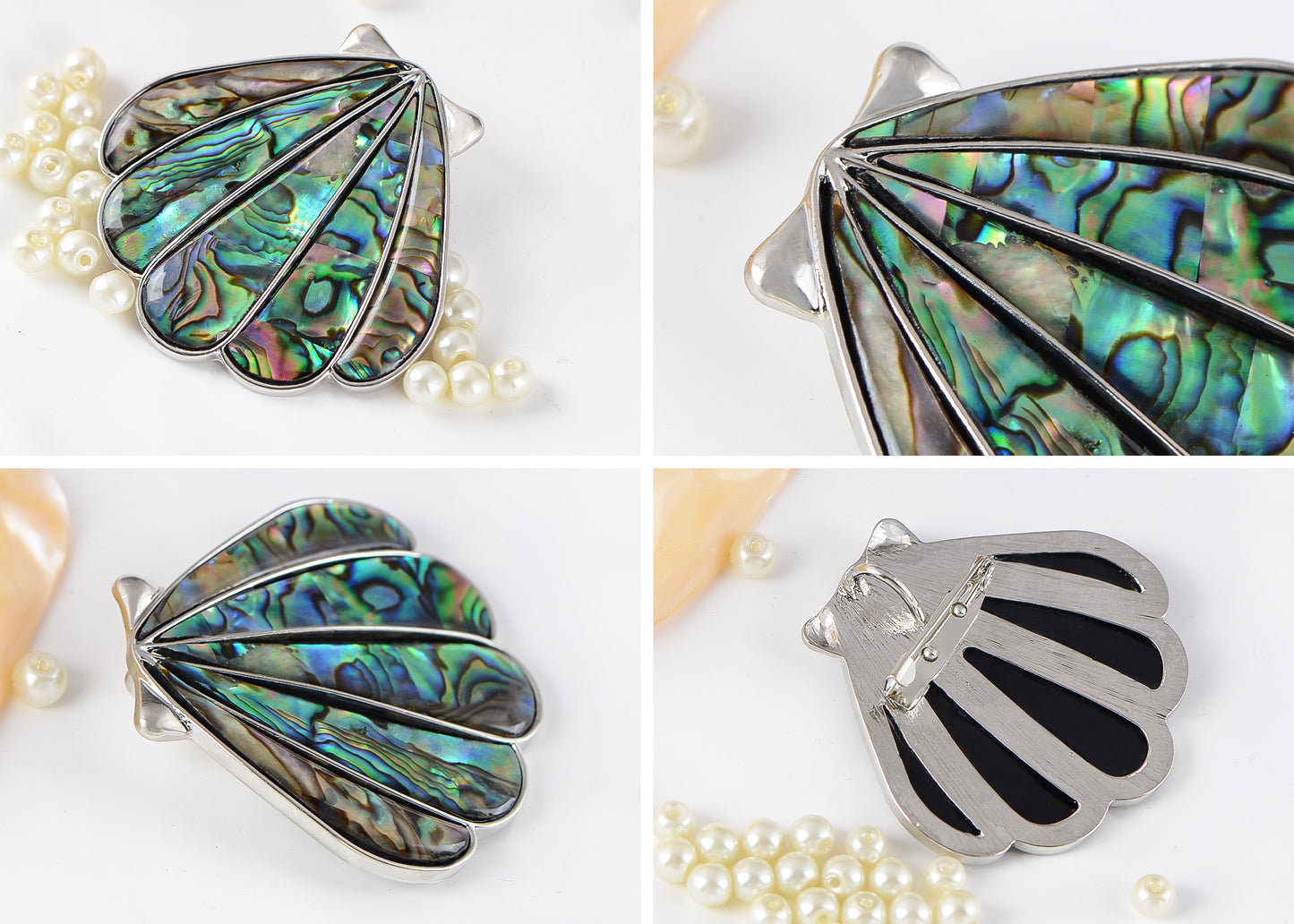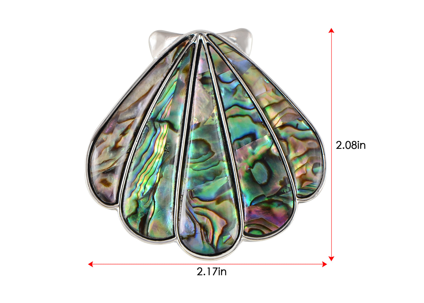 - UNIQUE DESIGN - This stunning brooch featuring a scalloped design, adorned with multicored abalone shell, and silvery tone metal alloy base.