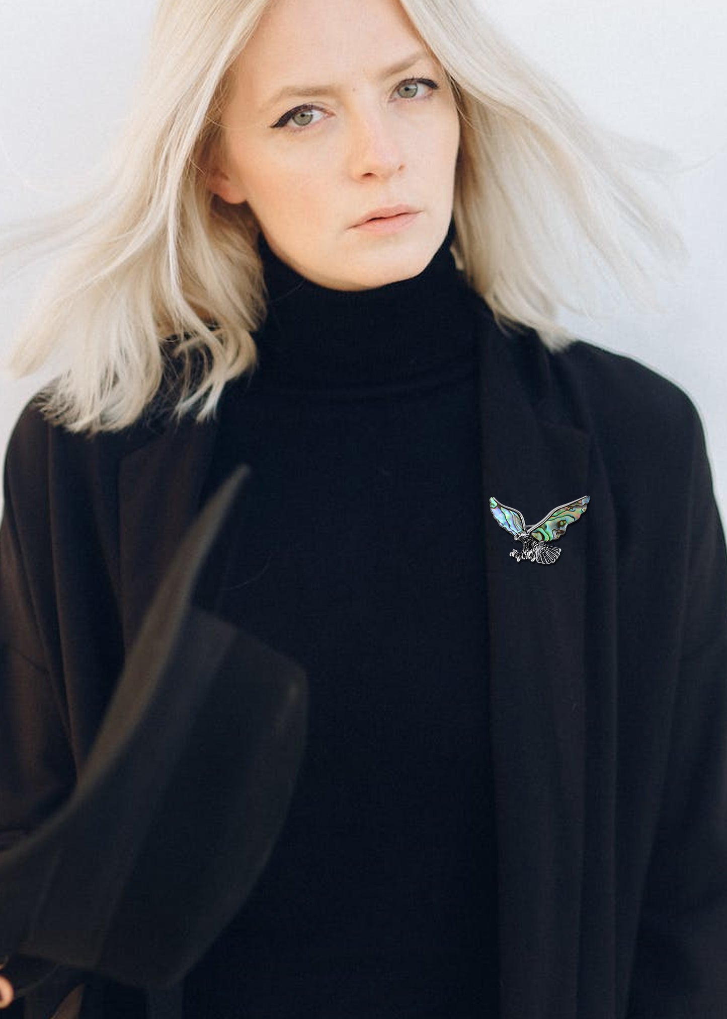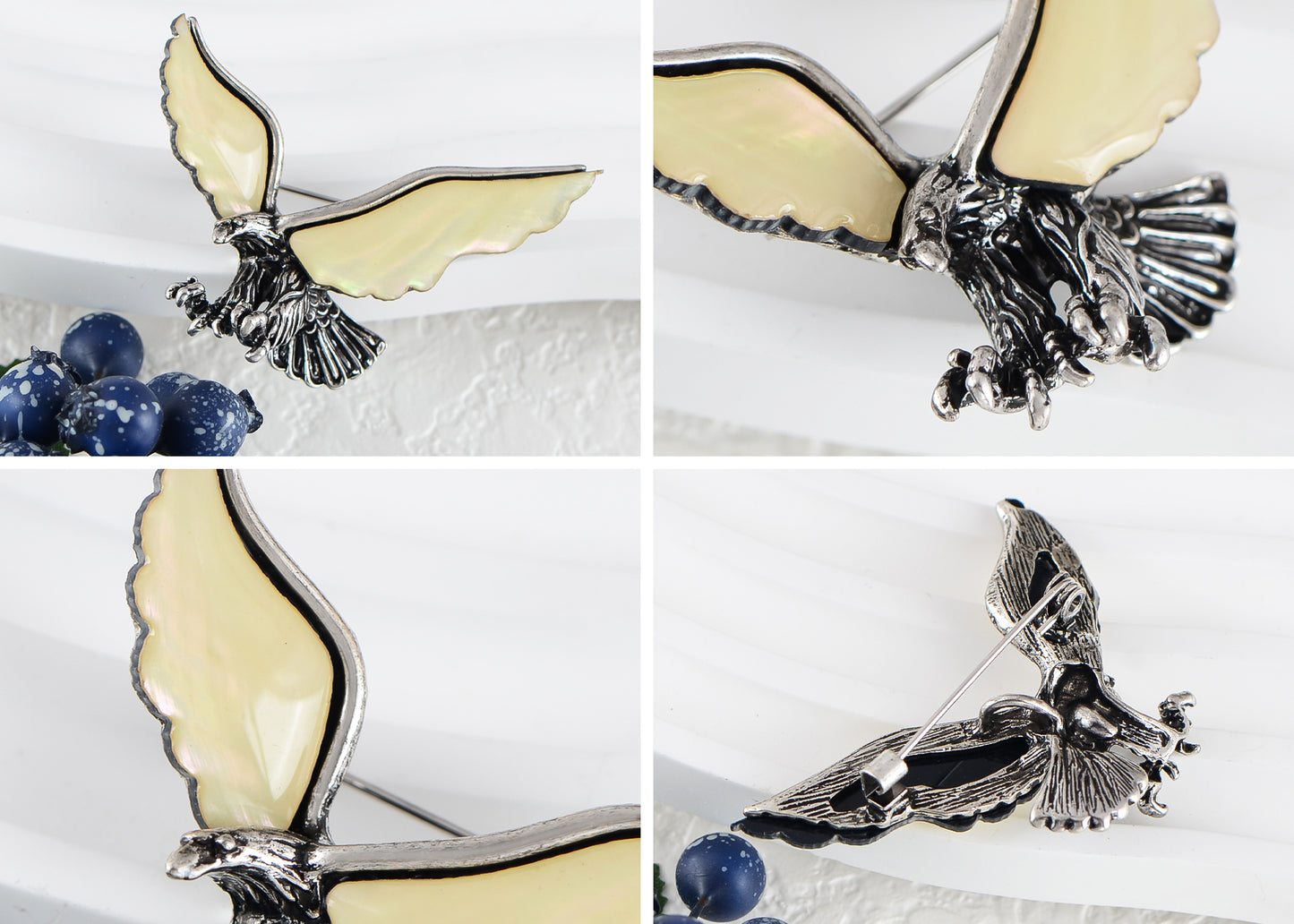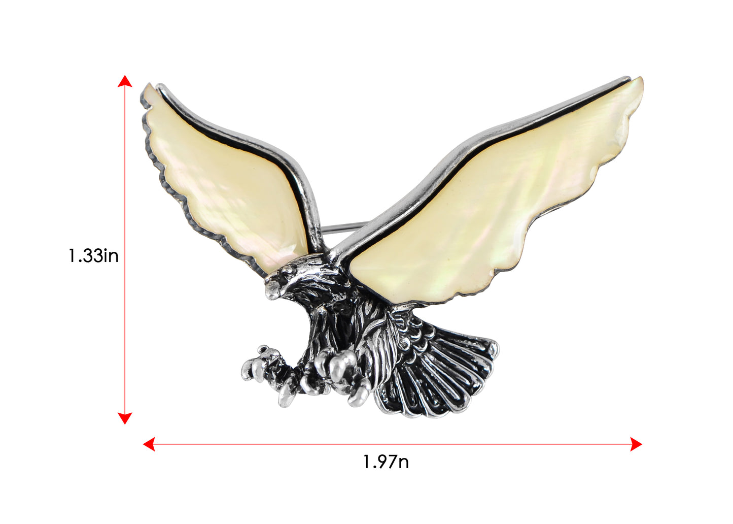UNIQUE DESIGN - This charming vintage brooch featuring a eagle design, adorned with abalone/ white shell, and silvery tone metal alloy base.