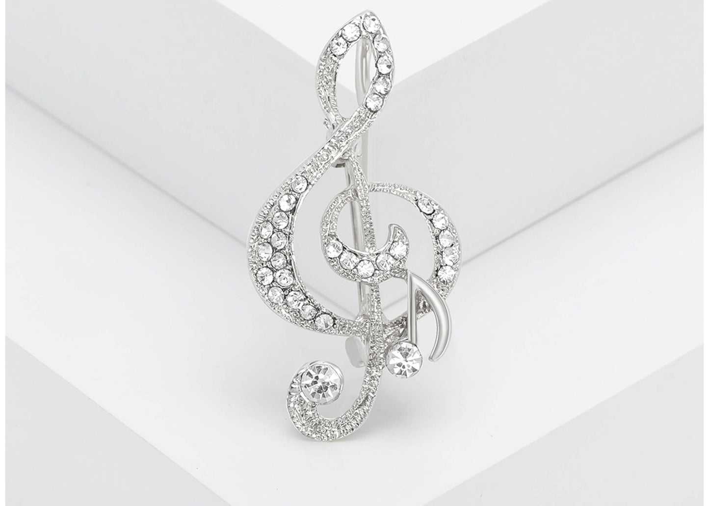 Elegant Design: This brooch features a beautiful Music treble clef design adorned with sparkling rhinestones, perfect for adding a touch of glamour to any outfit.