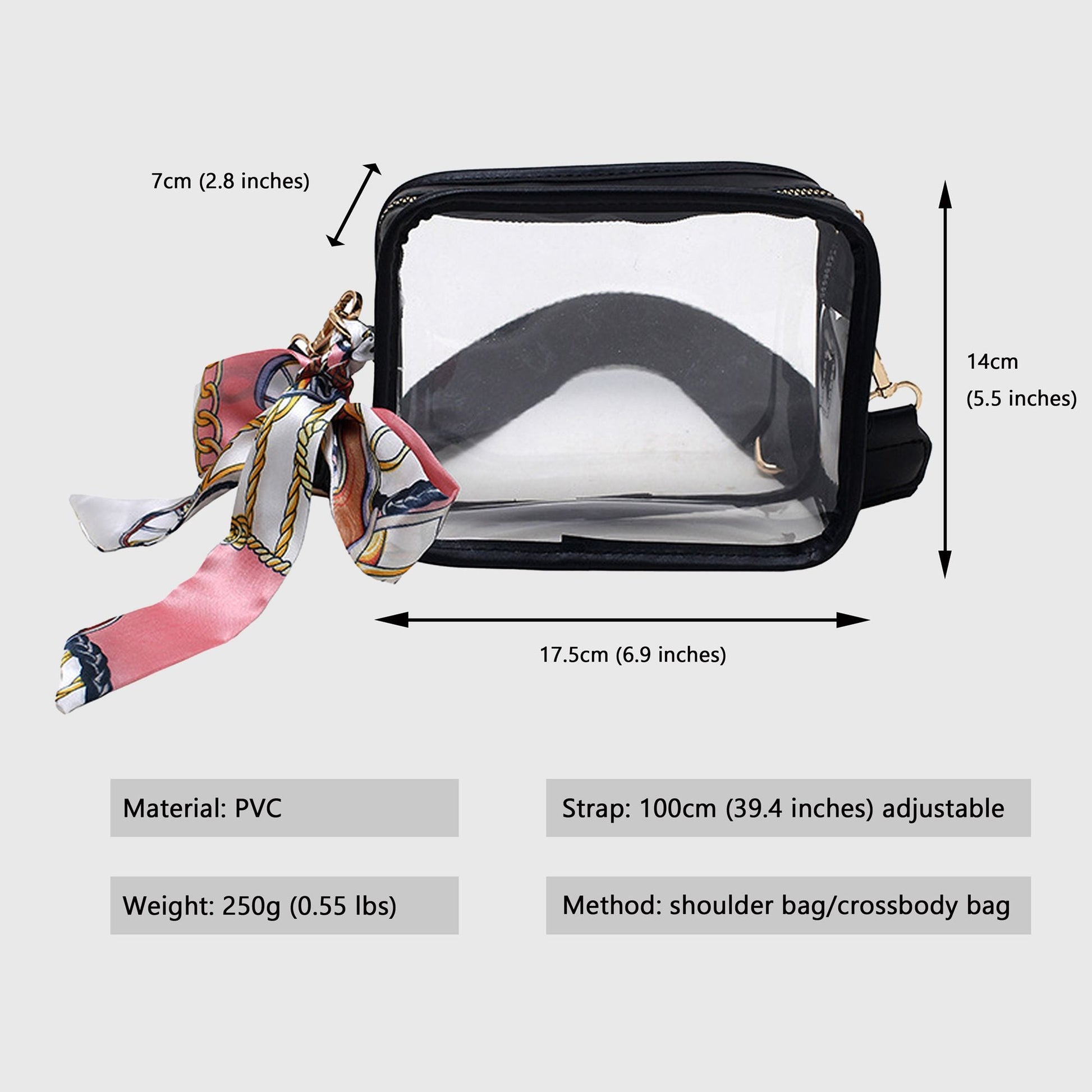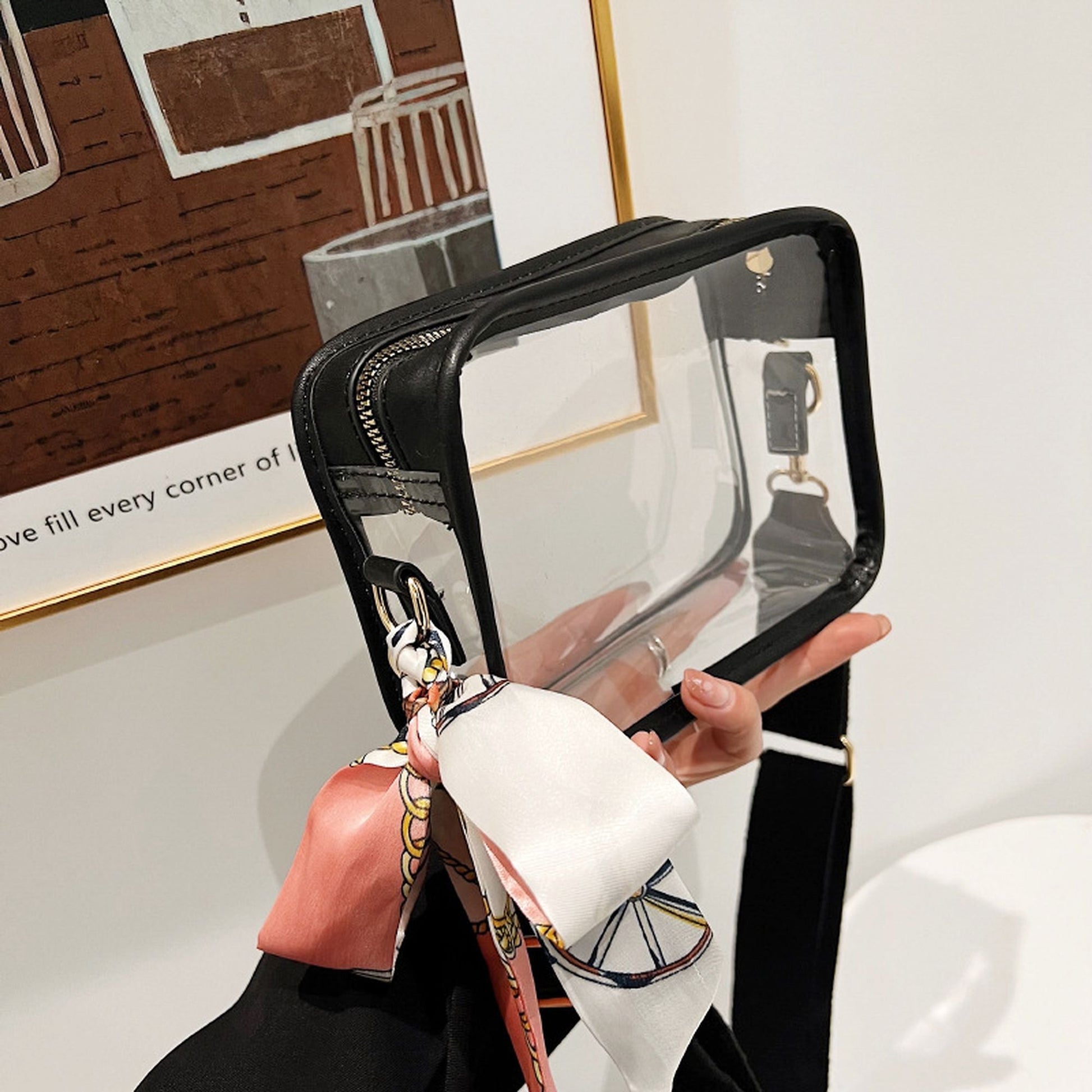 Elevate your style with our Chic Transparent Women's Shoulder Bag with Decorative Scarf. This bag combines functionality with fashion in a unique way. The transparent front panel not only gives it a modern, edgy look but also makes it convenient to locate your essentials without rummaging through the bag. Whether you're at a concert, sports event, or just running errands, you can easily access your items.