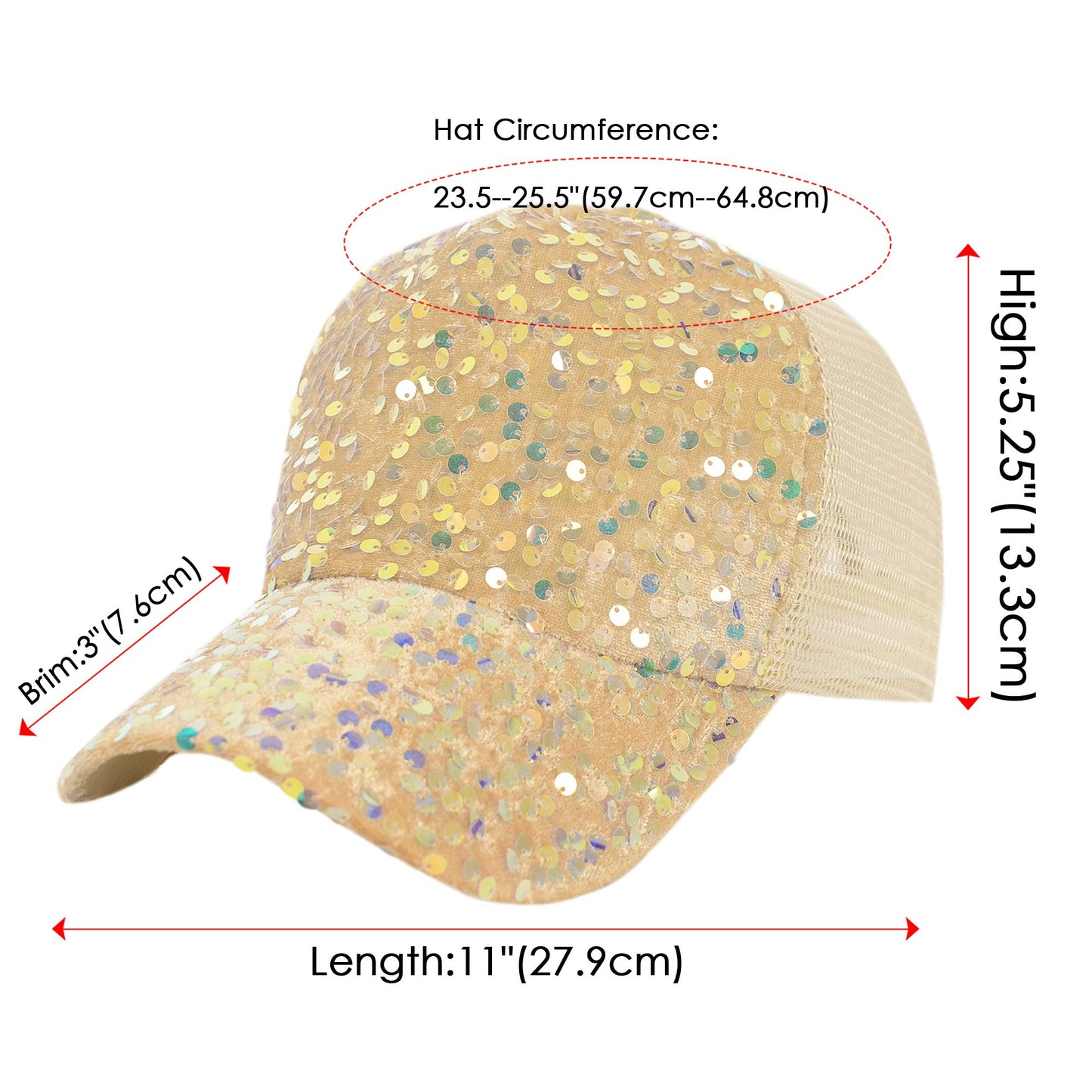 Anna-Kaci Women's Sparkly Sequin Baseball Cap Messy Low Bun Ponycap Velvet Mesh Trucker Hat