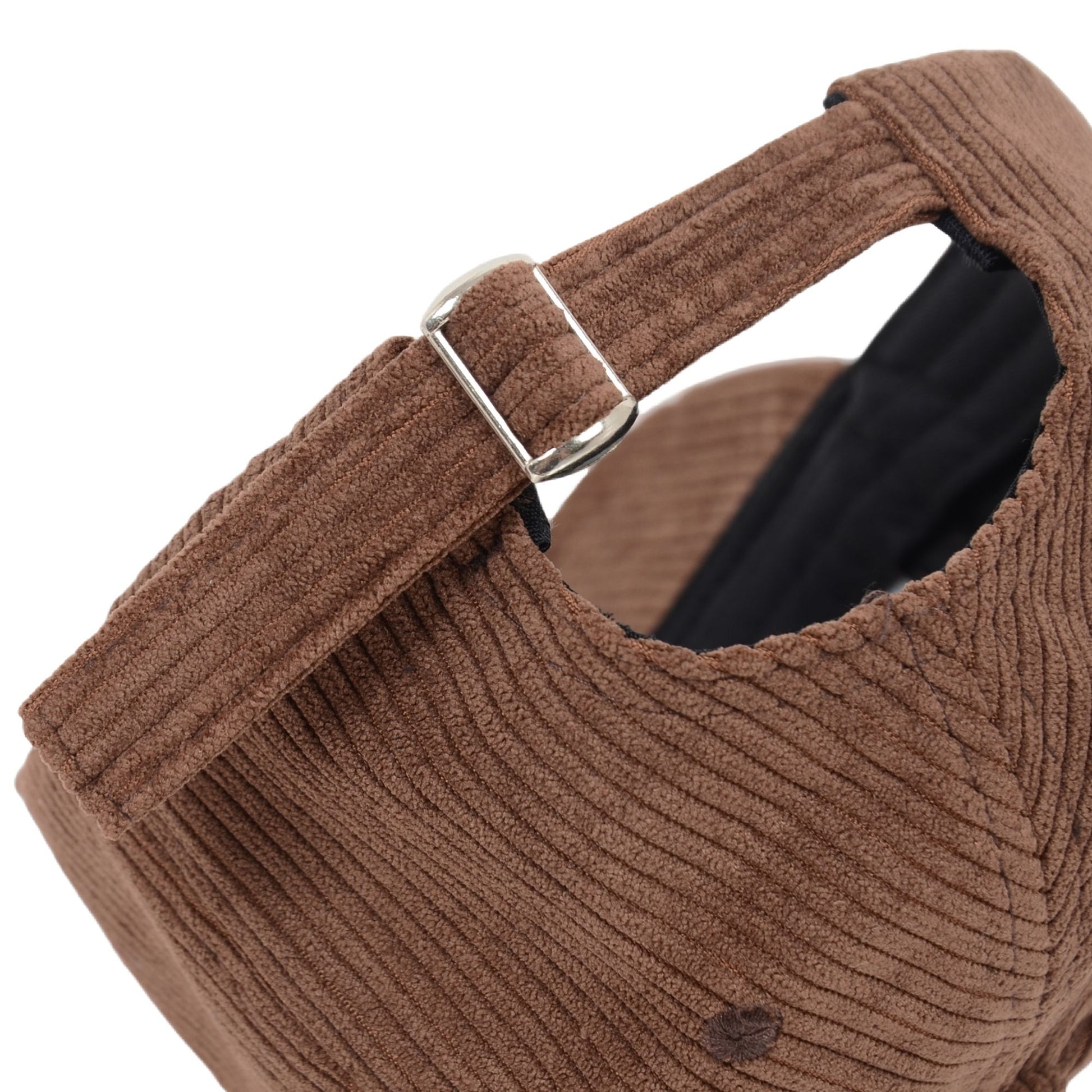 This baseball cap is made of corduroy fabric, offering a rich texture and a touch of nostalgia. The solid color design ensures a versatile look that pairs effortlessly with any outfit. The adjustable strap at the back allows for a comfort fit, making it suitable for all most head size.