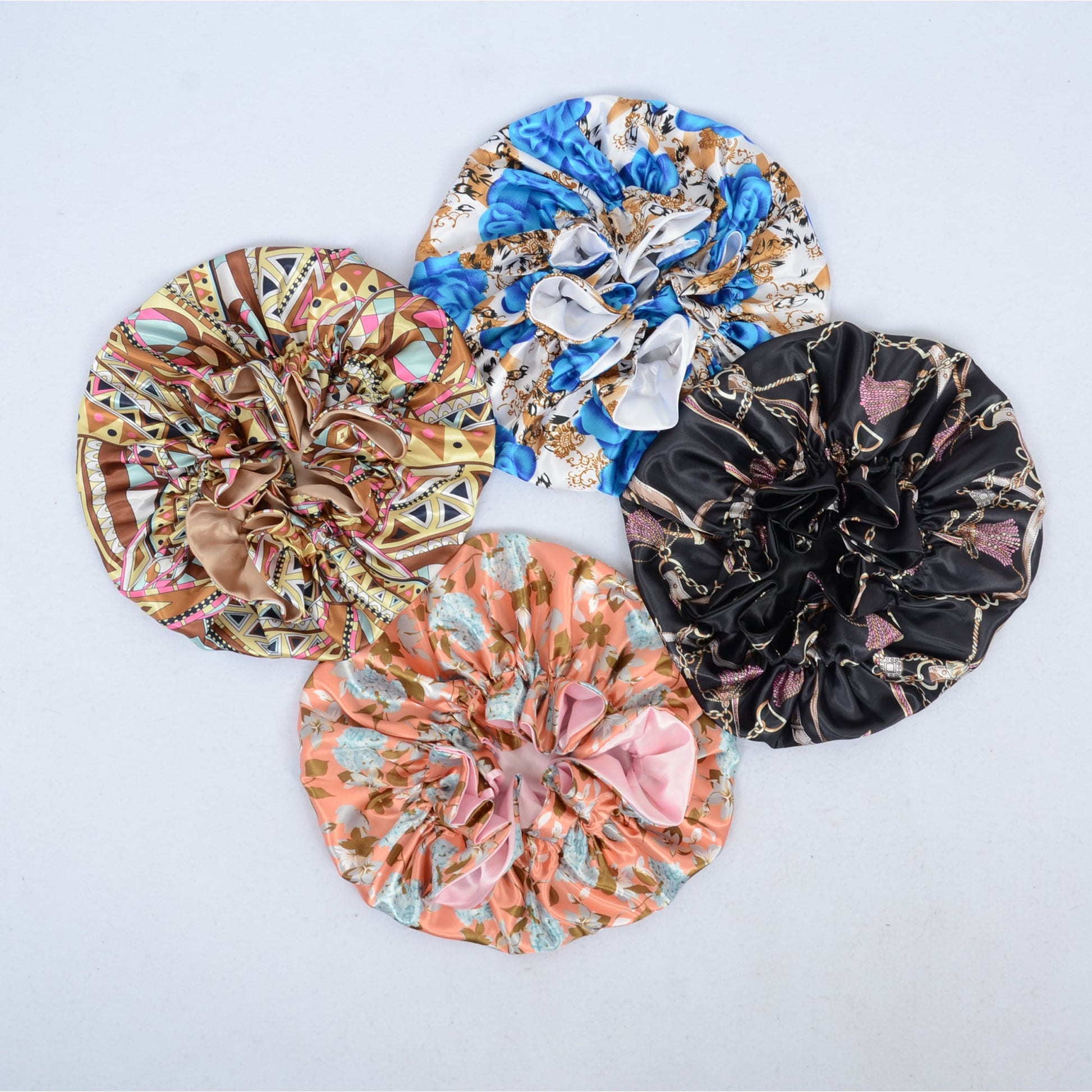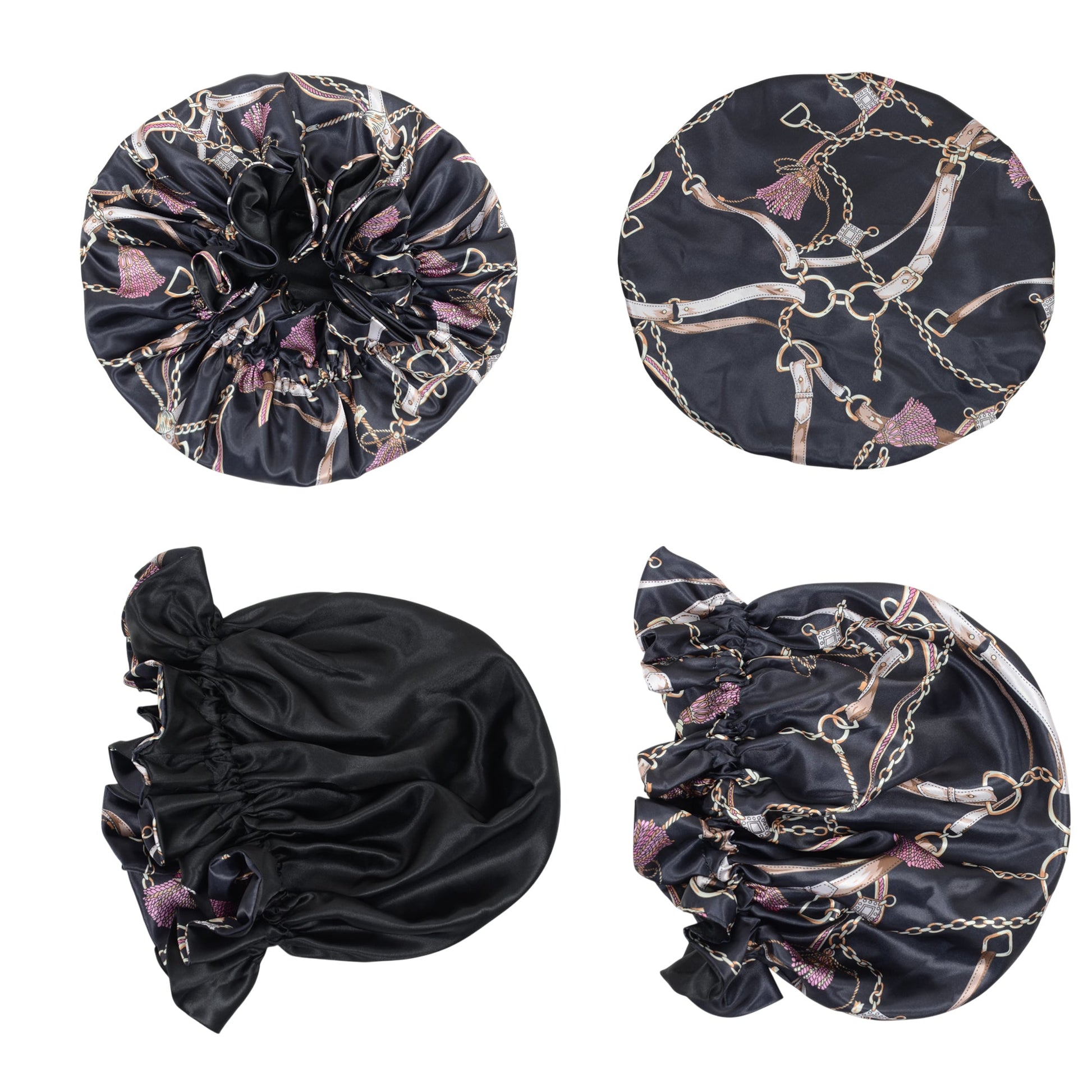 Anna-Kaci Satin Lined Print Bonnet Large Ruffled Edge Adjustable Sleep Cap for Natural Hair Protection