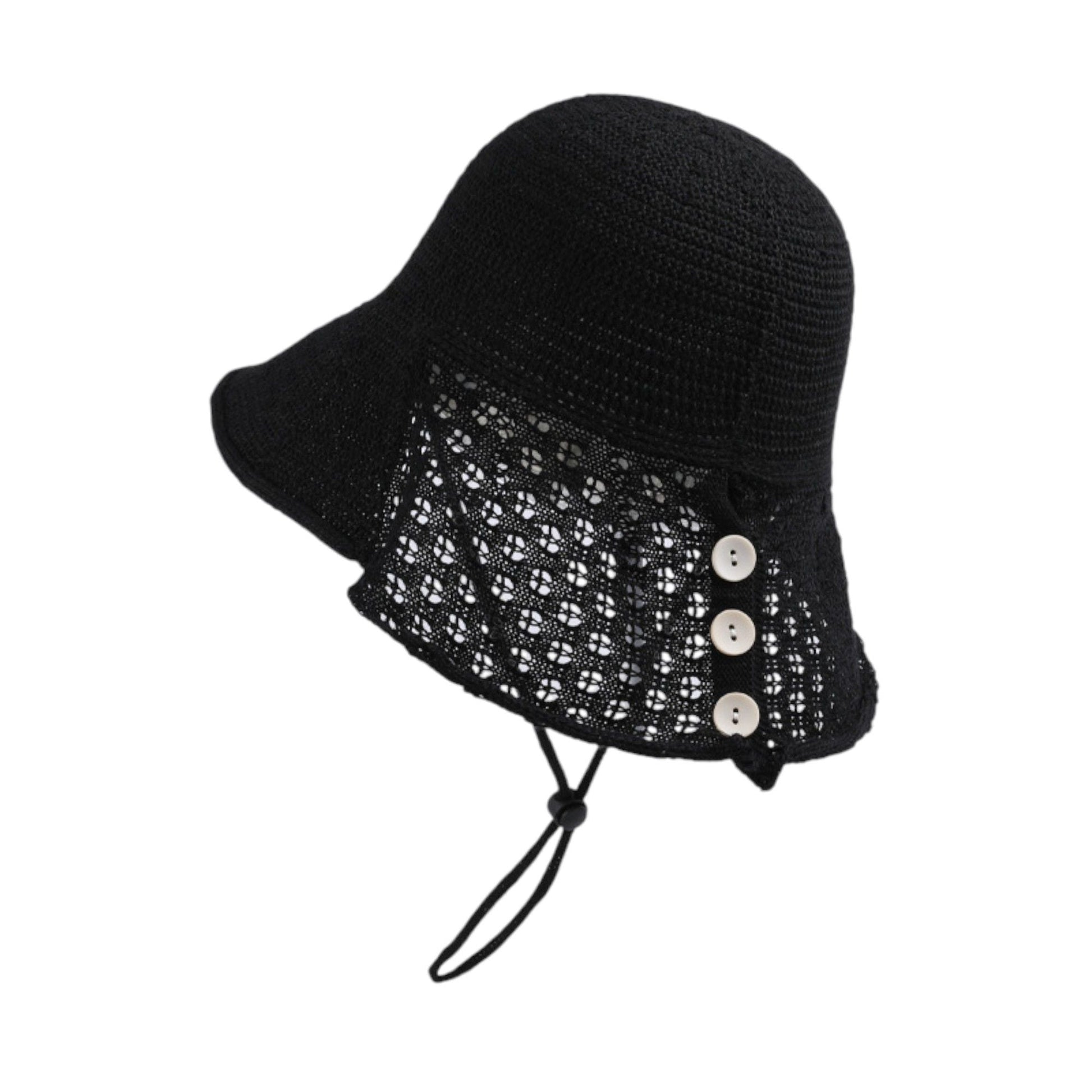 Anna-Kaci Crochet Bucket Hat with Adjustable Chin Strap and Back Button Eyelet Panel for Sun Protection
